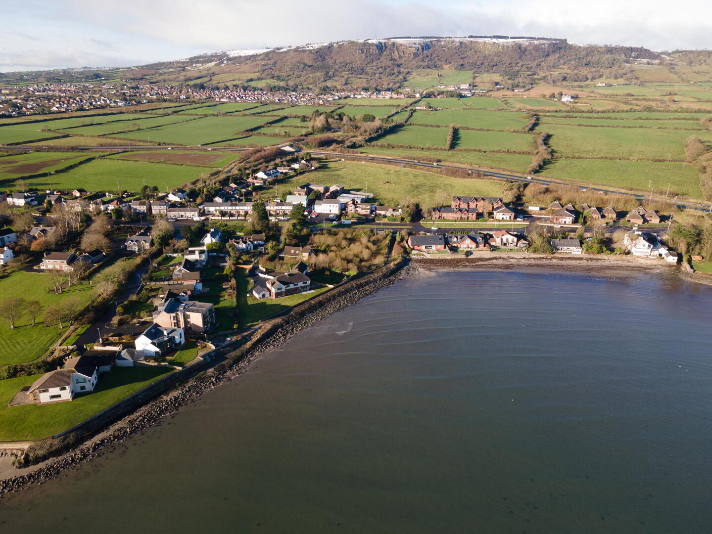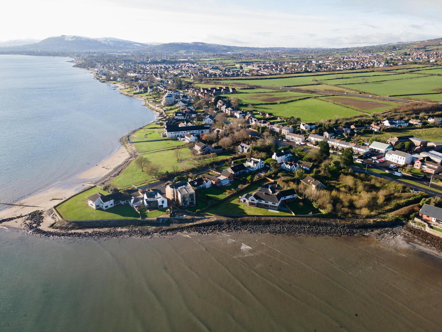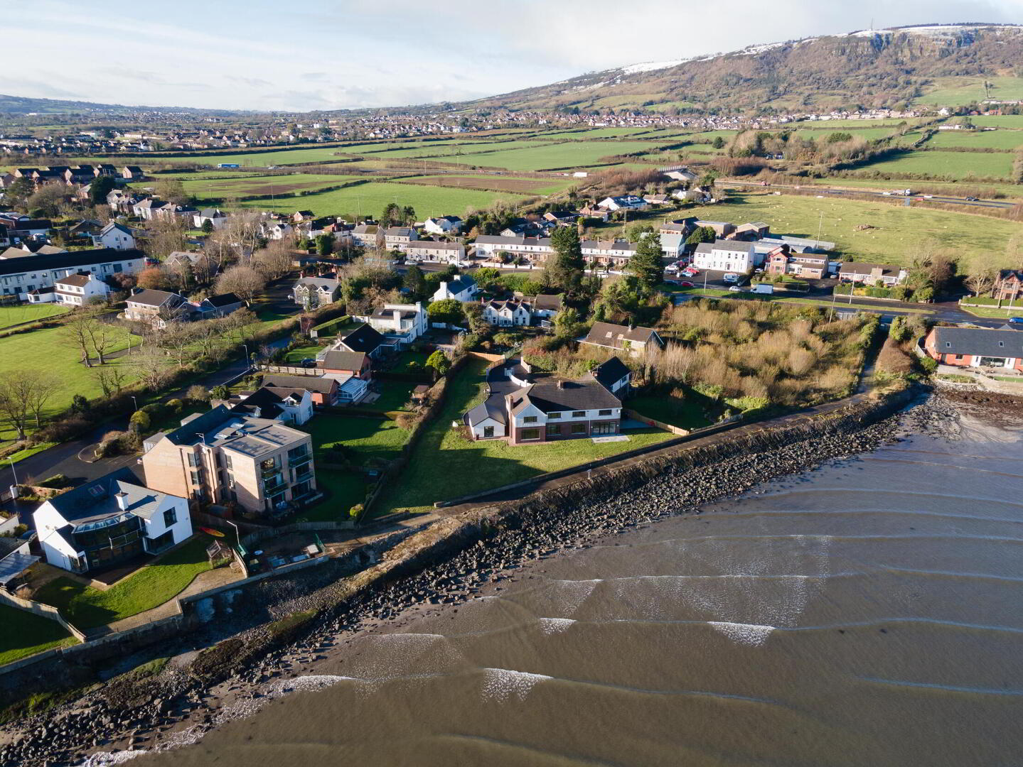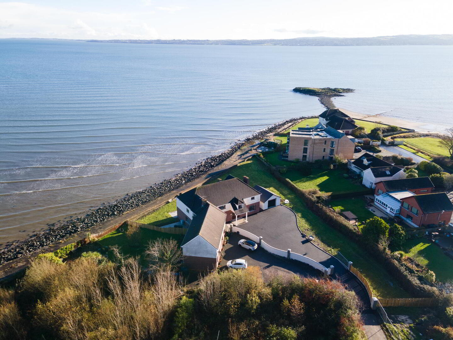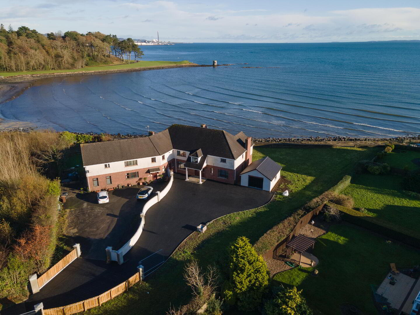 Rear in generous lawn and patio area with outstanding views of Belfast Lough and County Down Coastline