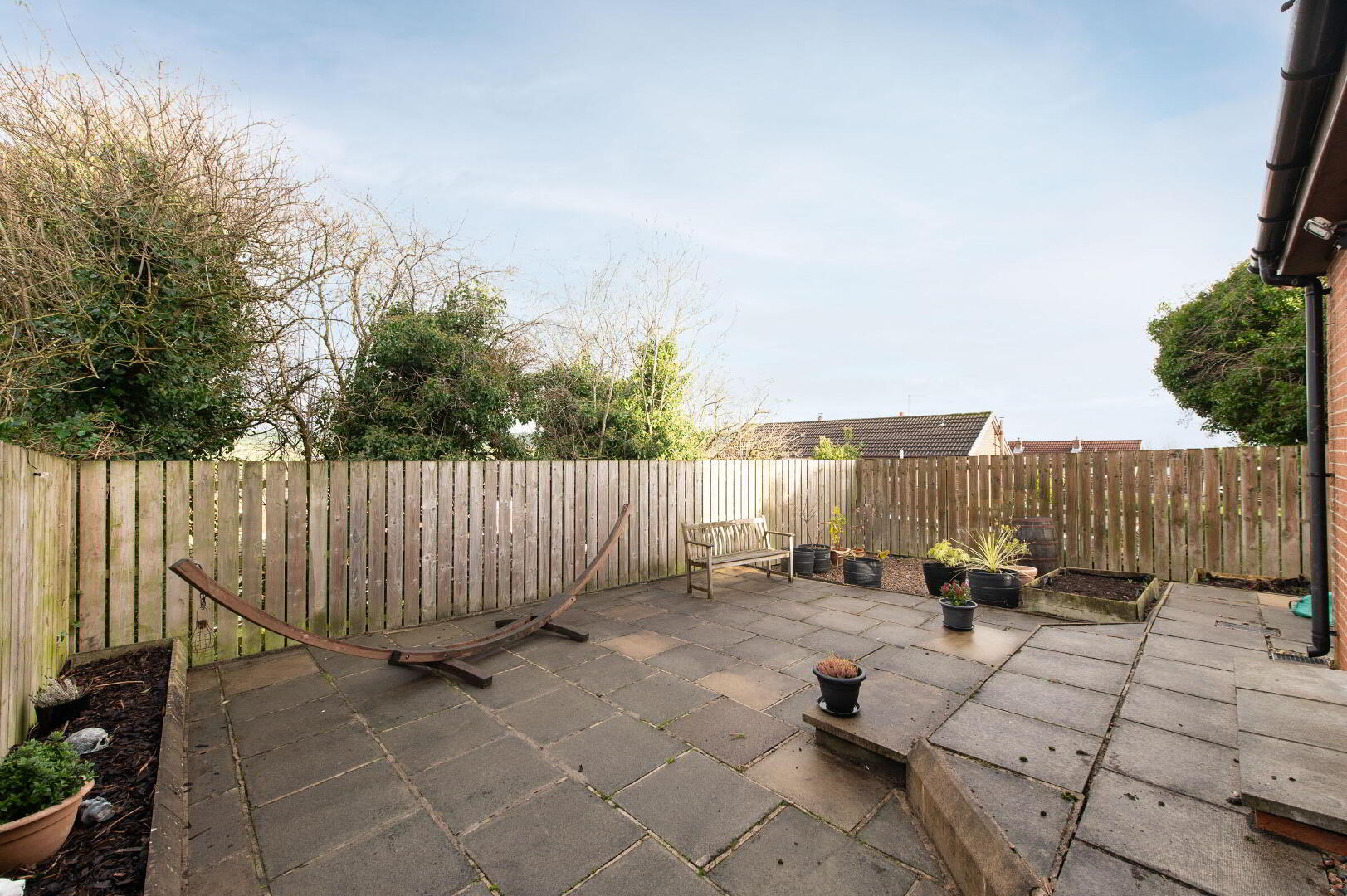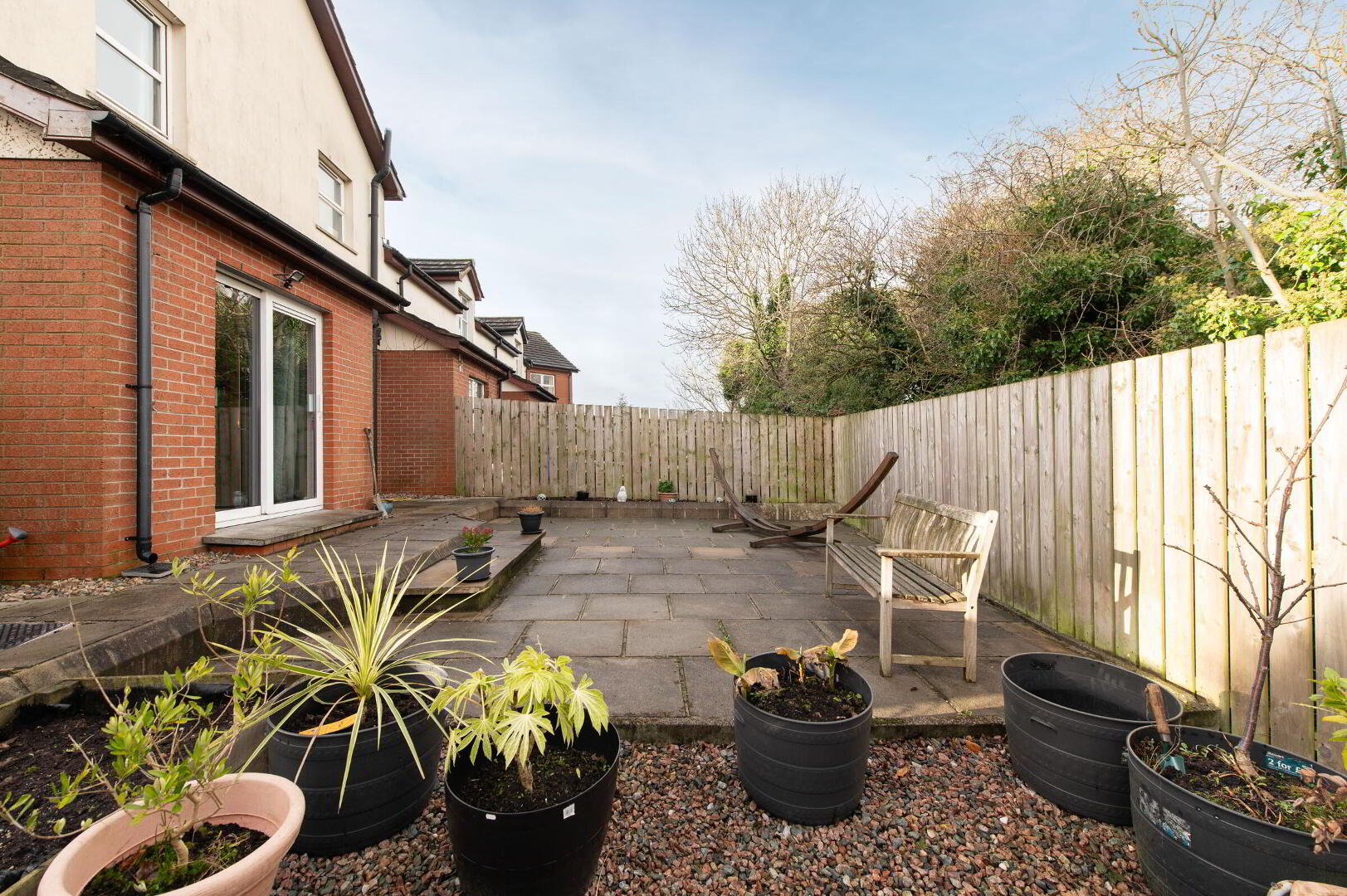 • Low maintenance paved patio garden to rear