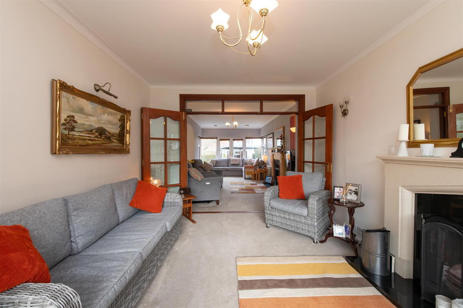 Feature gas fireplace with black granite inset and hearth. Cornicing. Downlighters. French doors to rear garden. Bi fold doors to lounge.