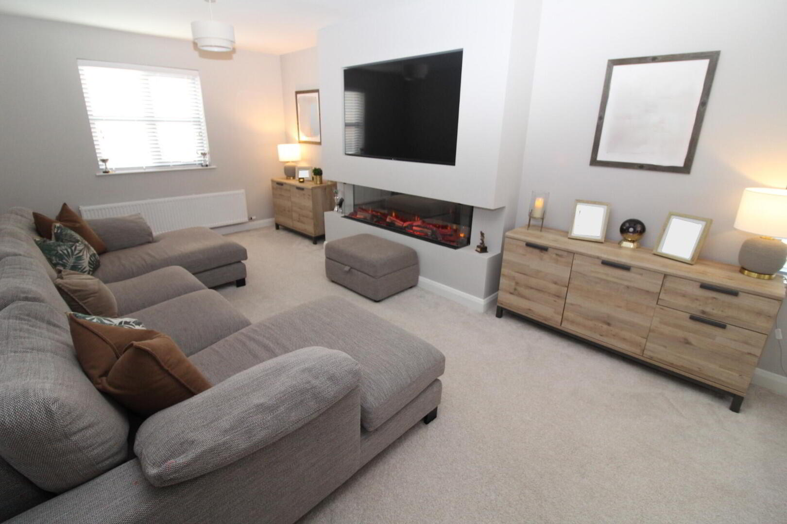 LOUNGE 21' 10" x 10' 7" (6.65m x 3.23m) Feature media wall, wired for flat screen TV with built in electric fire