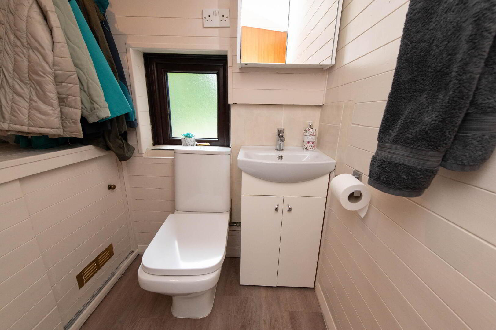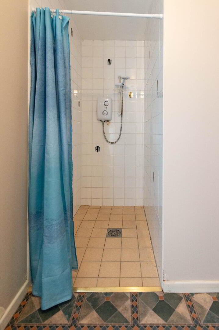 SHOWER ROOM Low flush W/C, pedestal wash hand basin, electric shower, extractor fan, tiling