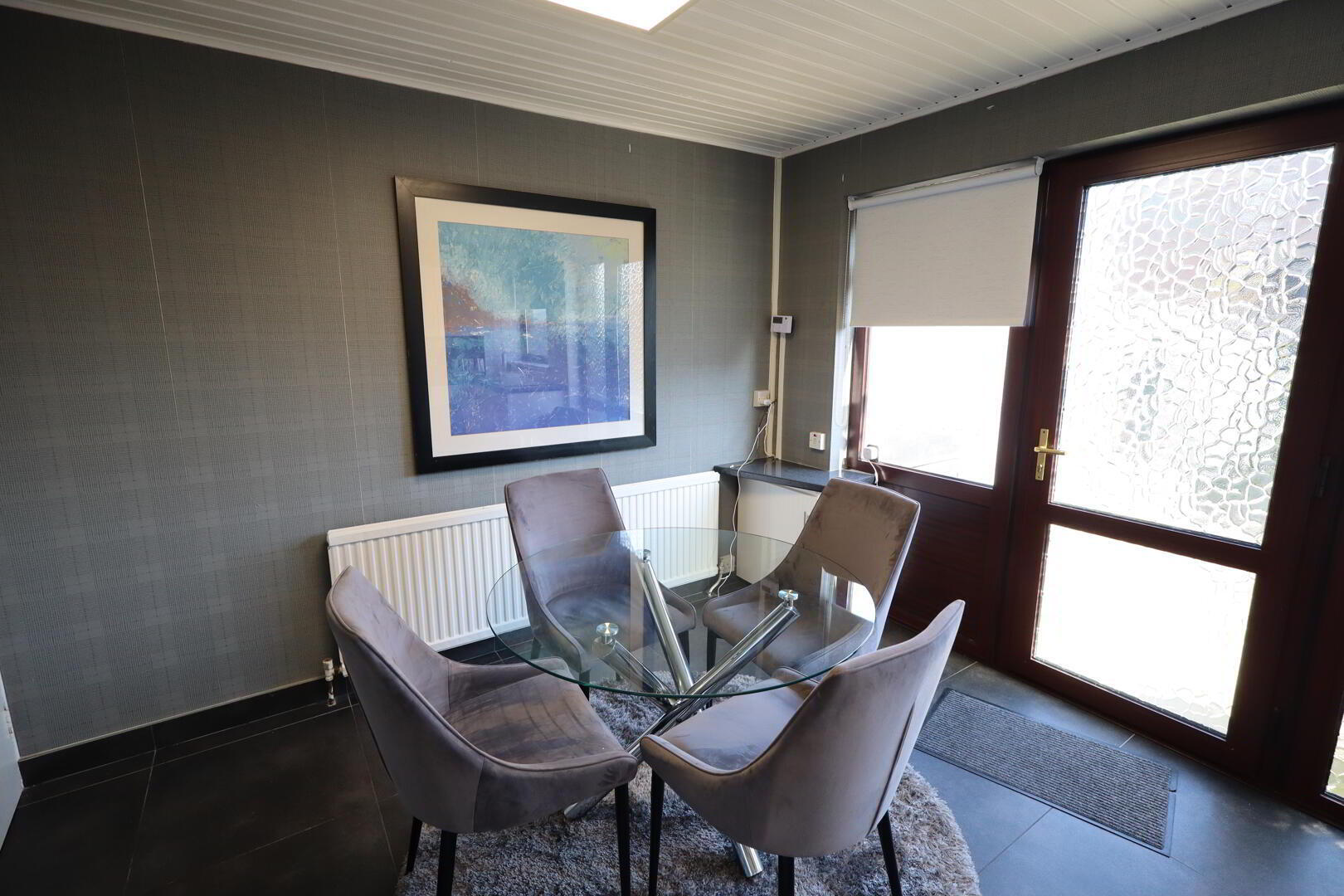 uPVC front door with glazed inset, wood laminate flooring.