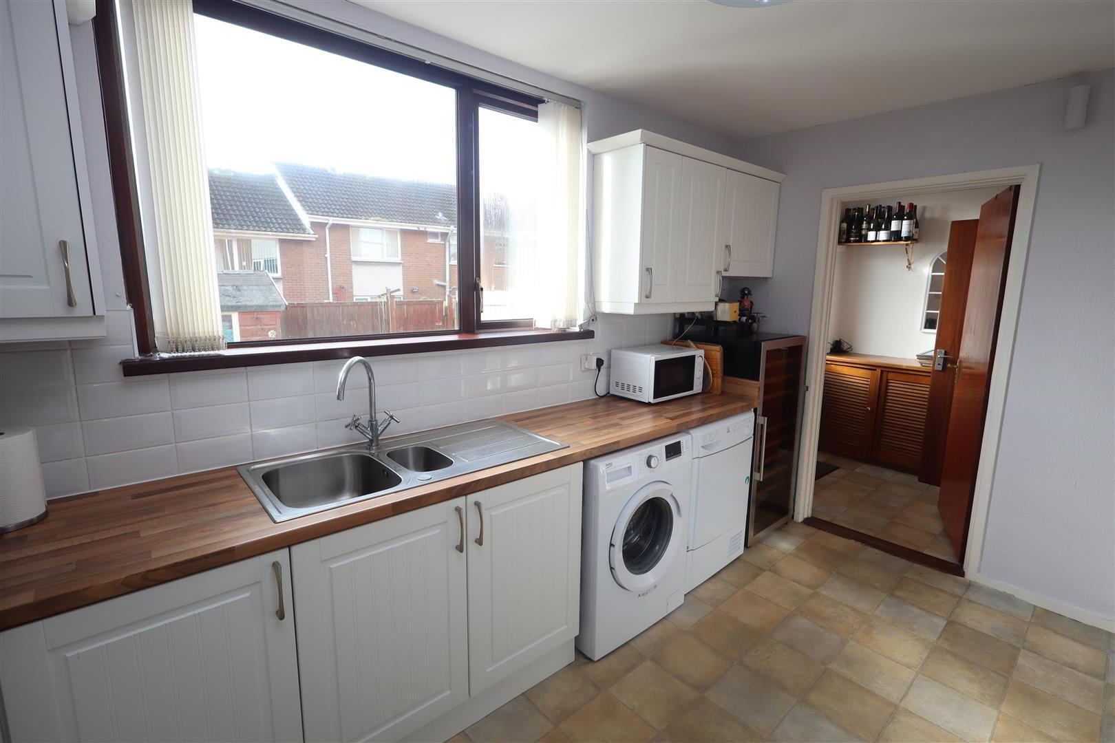 - Range of high and low level units, round edge worksurfaces, plumbed for washing machine, space for tumble dryer, space for hob/oven, 1 1/2 bowl stainless steel sink unit with mixer tap, part tiled