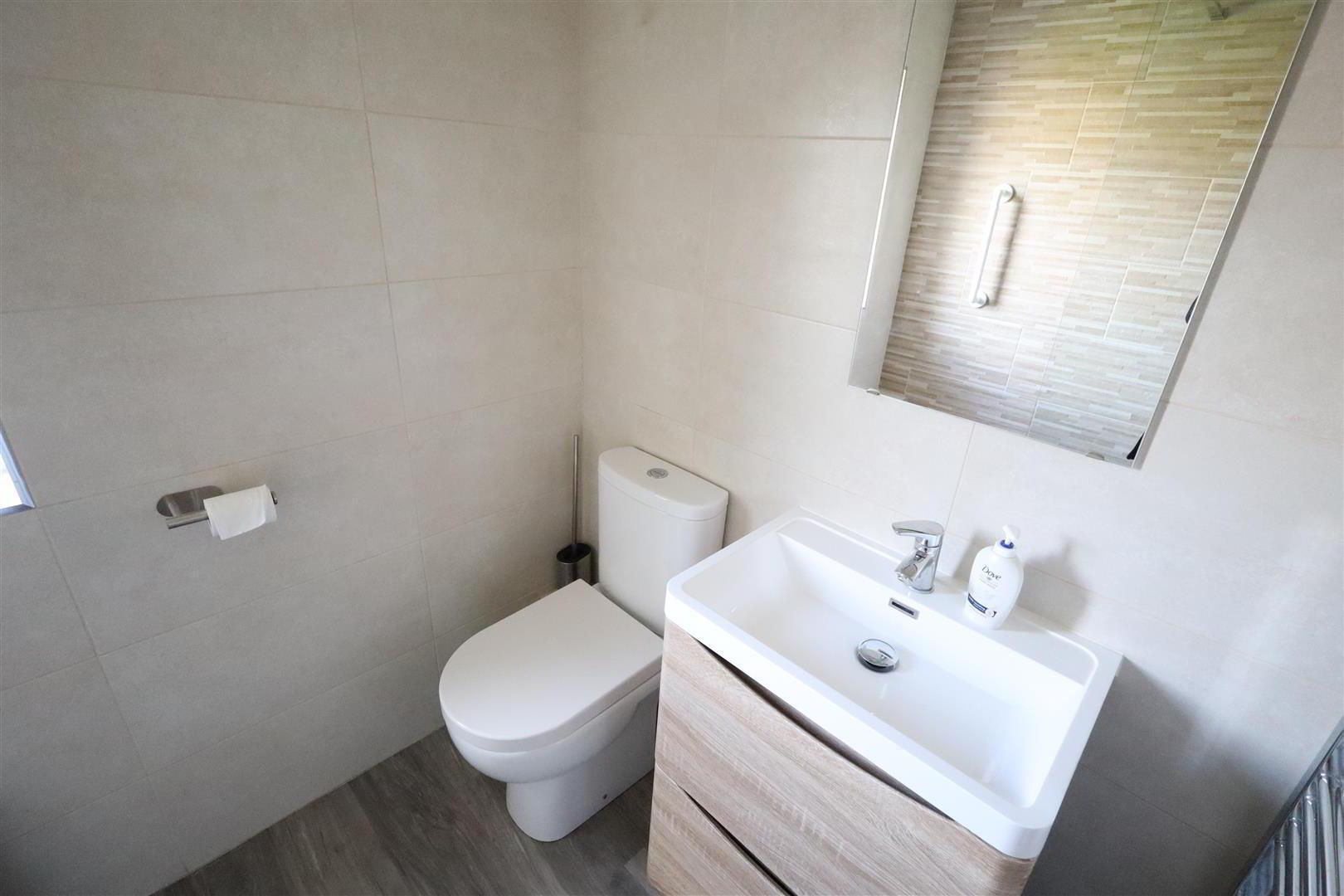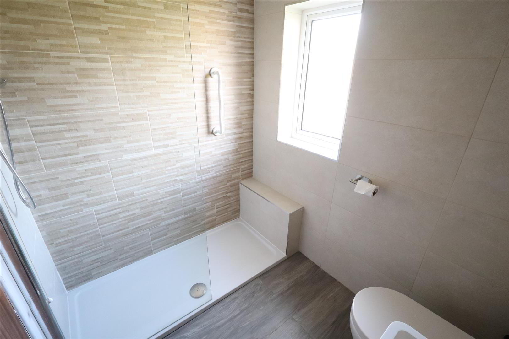 - Shower unit with thermostatically controlled shower, glazed shower screen, low flush W/C, modern floating vanity sink unit with mixer taps, chrome heated towel rail, extractor fan, wall tiling