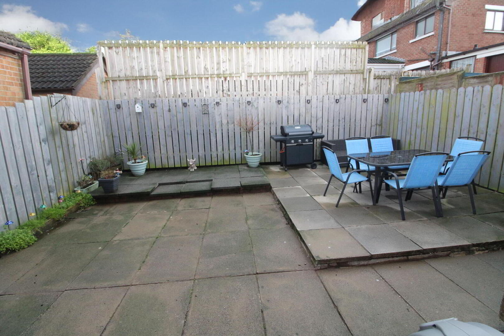 Rear: paved garden to rear