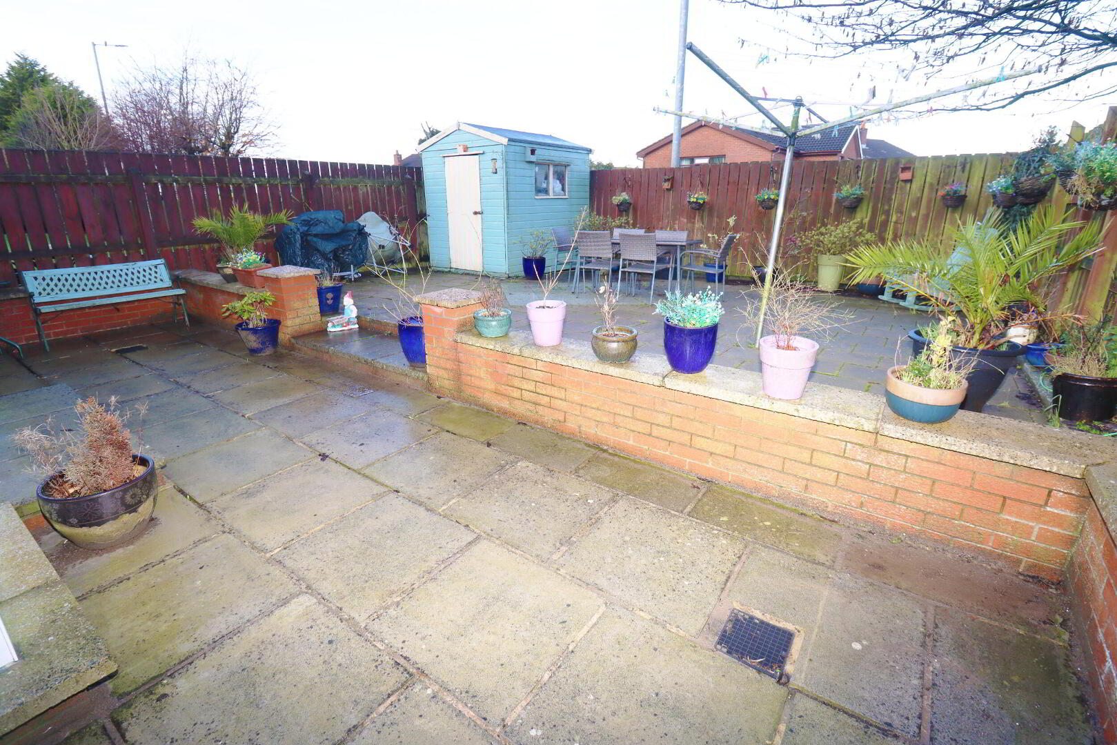 Rear: Paved patio area, uPVC fascia and rainwater goods