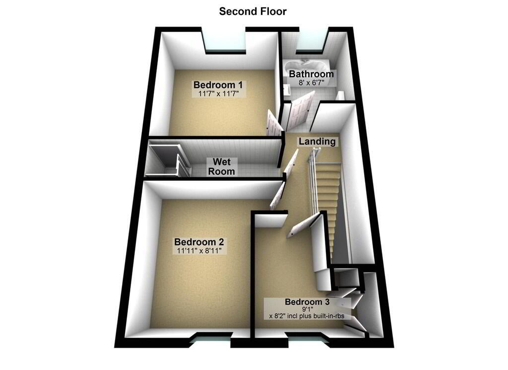 BEDROOM (2) 11' 11" x 8' 11" (3.63m x 2.72m)