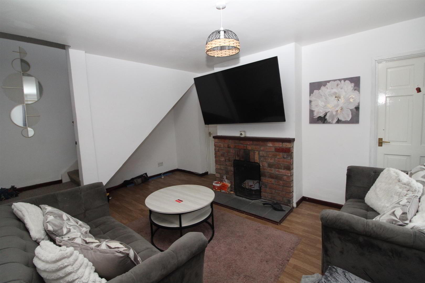 - Plus recess, laminate wood flooring, brick fireplace with open fire and tiled hearth