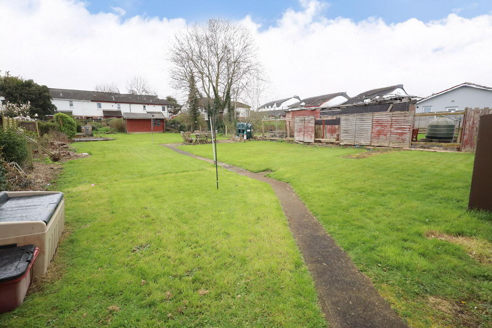 Rear: Generous garden to rear, in paving, shed, oil boiler, uPVC oil storage tank, outside tap and light
