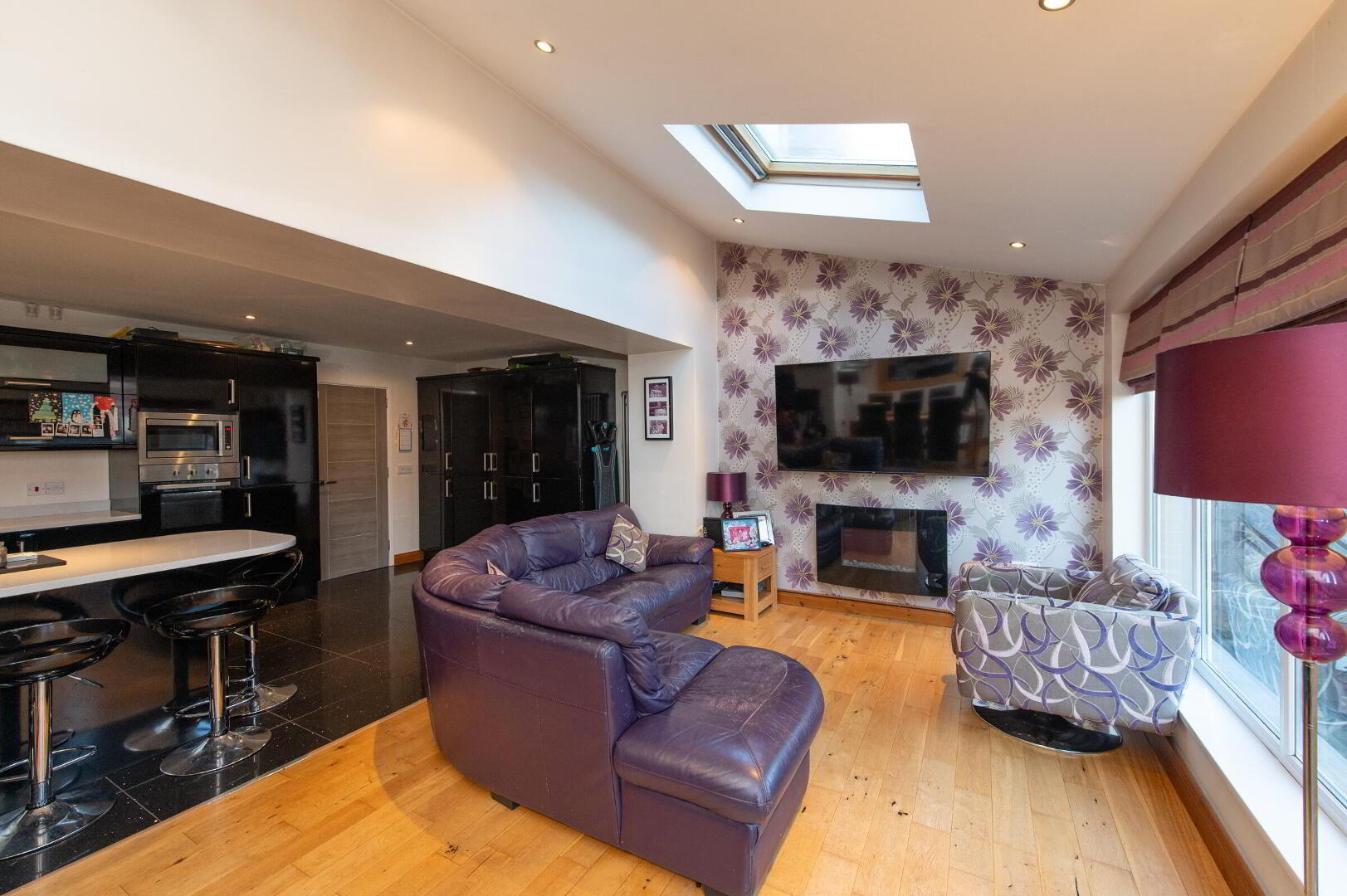 • Modern high gloss kitchen open plan to: