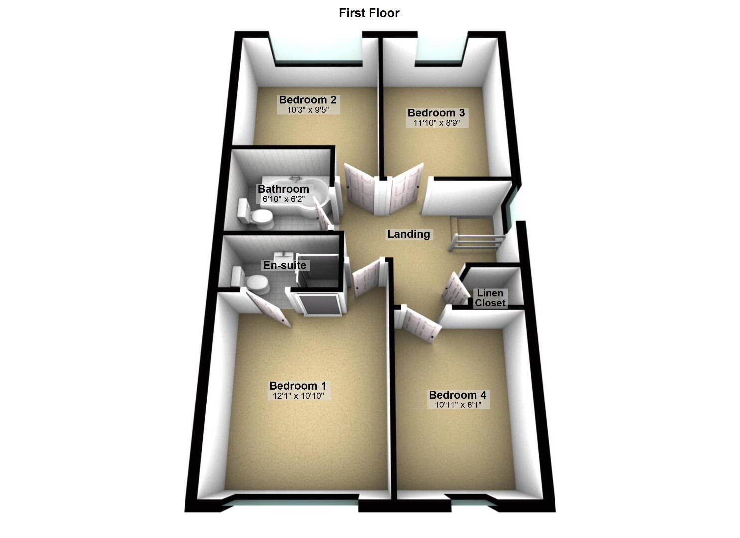 • 4 Bedrooms (one with ensuite)