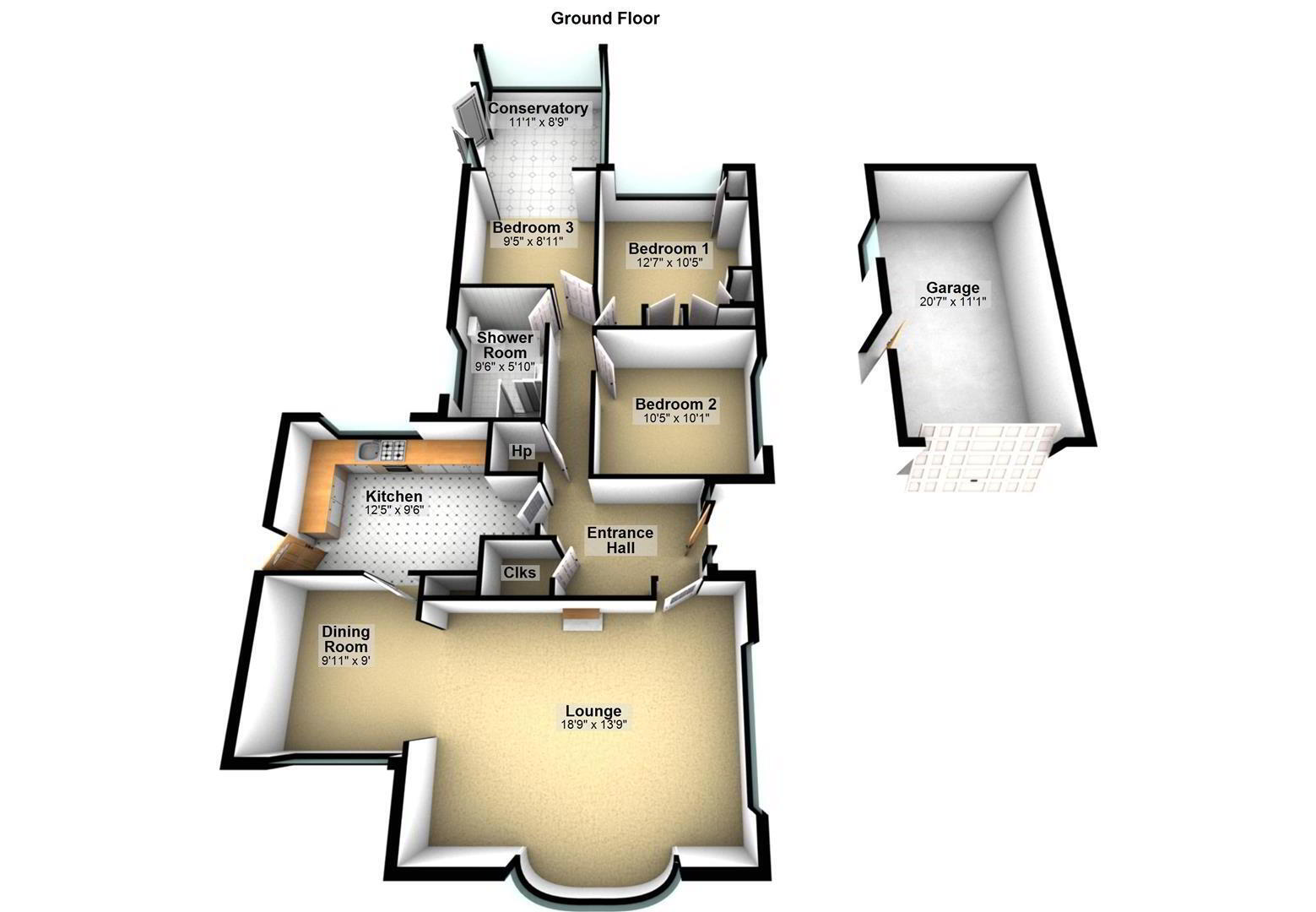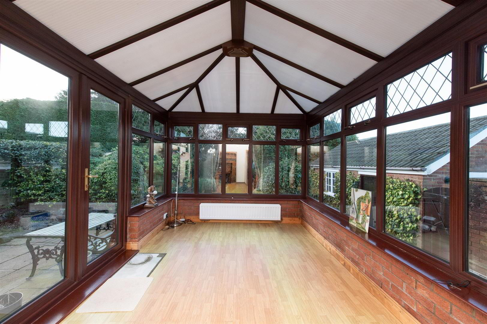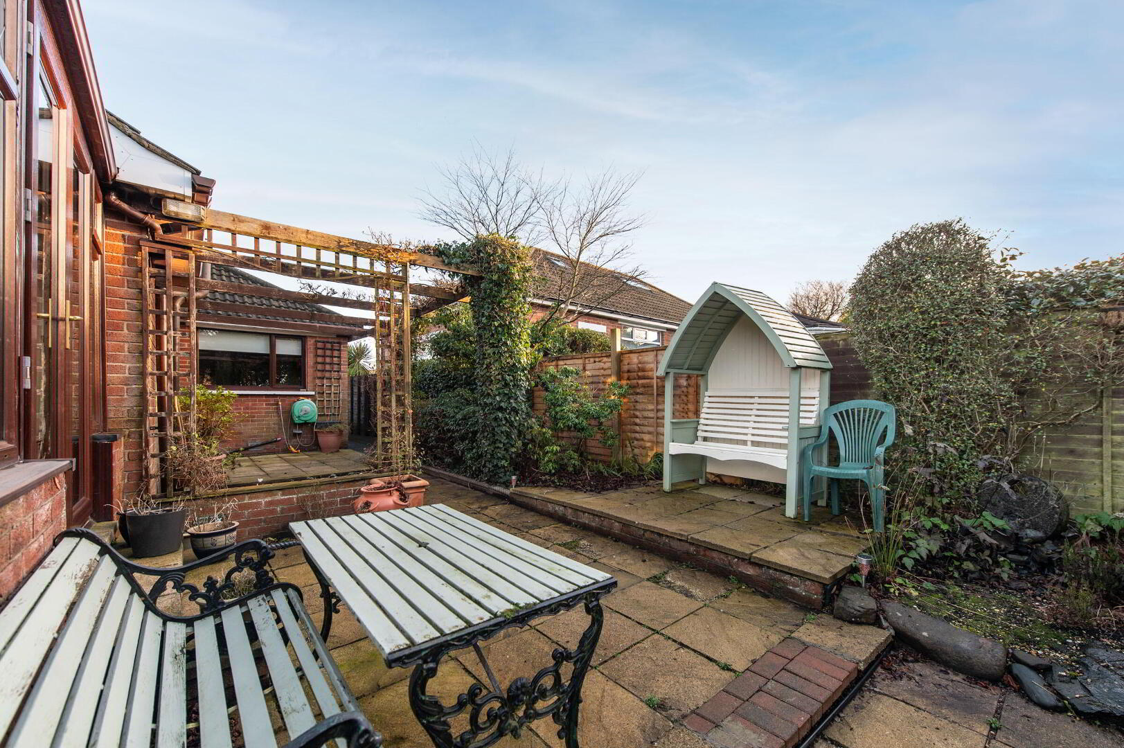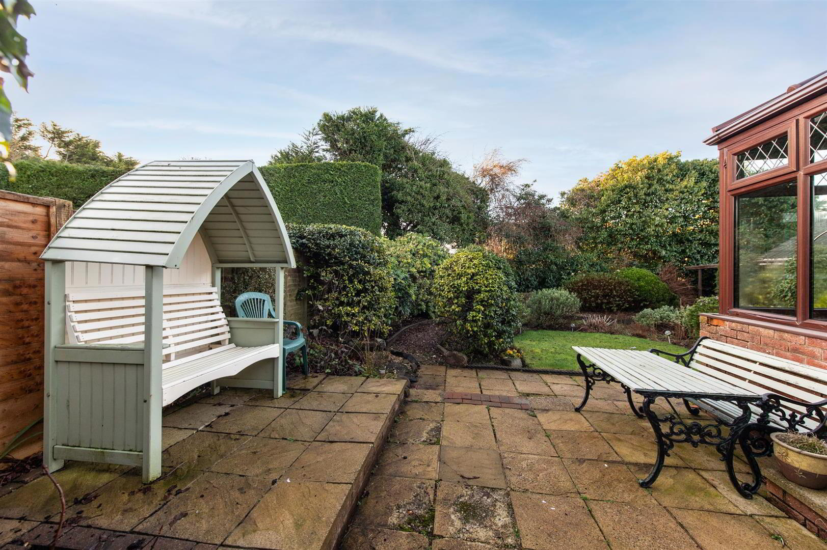 Situated in a highly regarded and sought-after location, this attractive three-bedroom detached bungalow offers spacious and flexible accommodation, ideal for a wide range of buyers. The property features a generous lounge which flows seamlessly through an archway into the dining room, creating a bright and welcoming living space. The oak fitted kitchen adds warmth and character, while the modern shower room is finished to a contemporary standard. Bedroom three benefits from a conservatory extension, providing a versatile additional space that could be used as a sitting area, home office, or garden room. The layout of the bungalow allows for flexible accommodation to suit individual needs. Occupying a generous site, the property boasts a landscaped rear garden, offering an excellent level of privacy. A small stream running along the boundary adds charm and a tranquil setting. Further benefits include a large detached garage, providing ample storage or parking.