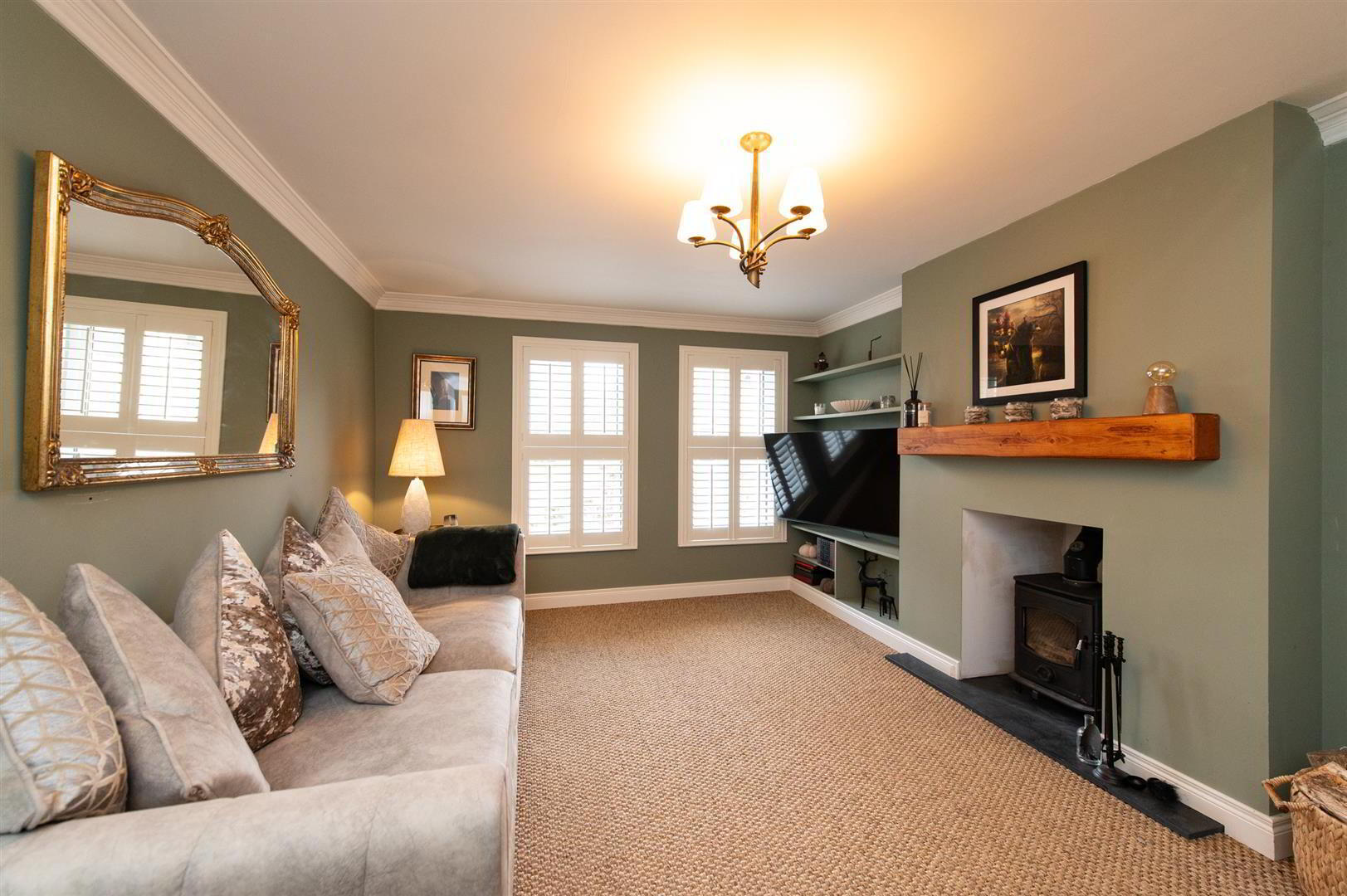 - Mantle and slate hearth, wood burning fire, cornicing, window shutters