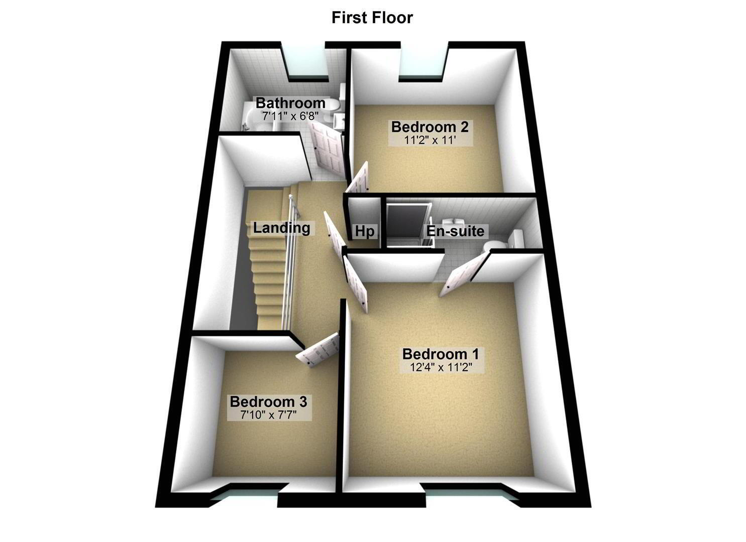 - Low flush W/C, vanity unit with twin drawers, panelled bath unit with mixer tap and controlled shower, tiling, ceramic tiled flooring, extractor fan, heated towel rail