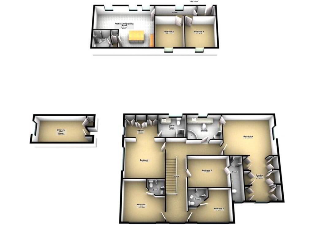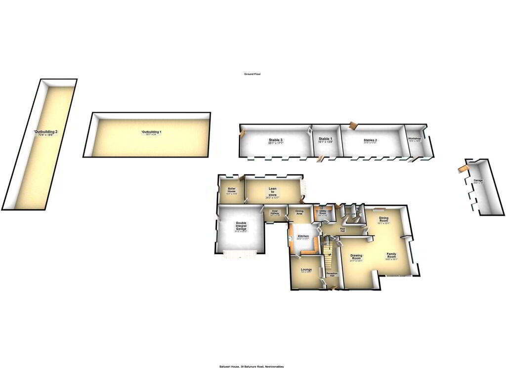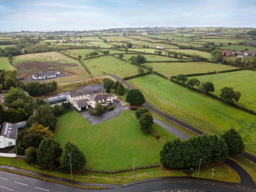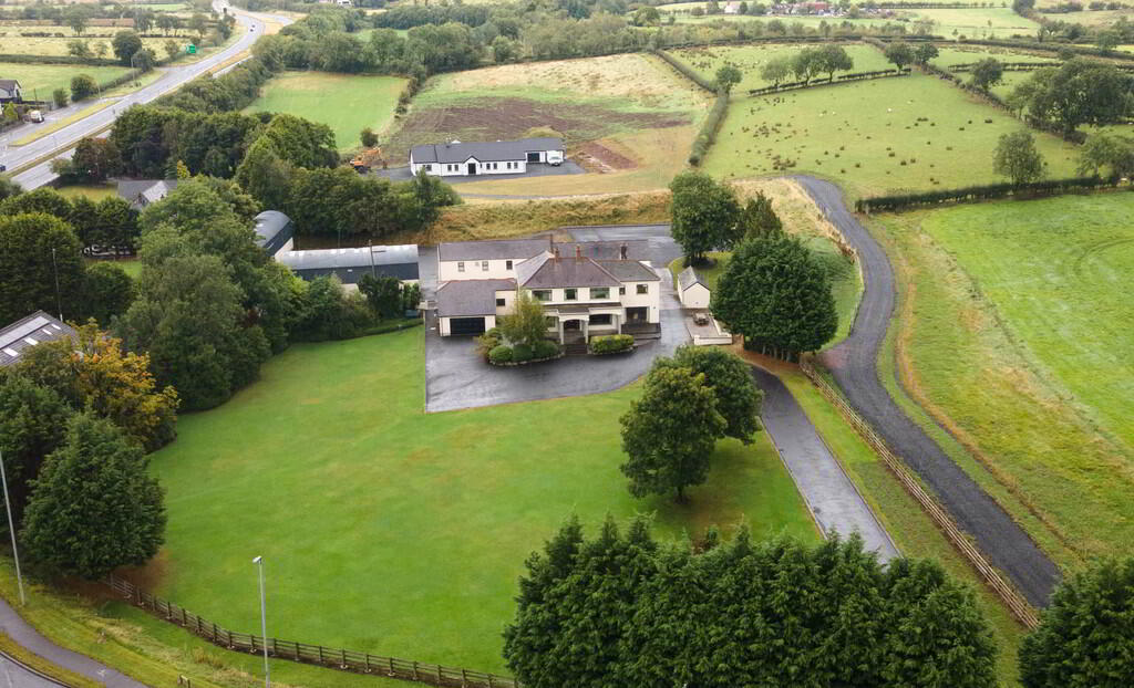 This impressive large detached residence is set on approximately 2 acres of beautifully landscaped grounds, offering a rare combination of space, privacy, and flexibility. The generous accommodation includes 5 well-appointed bedrooms, each with its own ensuite, ensuring comfort and convenience throughout. The reception rooms provides a spacious setting for entertaining, complemented by a dedicated children's lounge for family living. Outside, the mature gardens surround extensive garaging and an expansive range of outbuildings, including workshops, stables, and a rack room—perfect for a variety of uses. Ideally located with convenient access to major road networks, this unique property is suitable for a wide range of lifestyle or business opportunities. It also presents potential for division and sale in separate lots, offering added versatility to discerning buyers or investors seeking a multi-faceted estate.