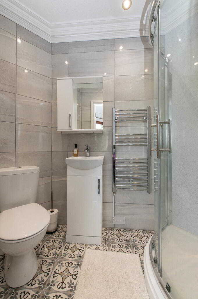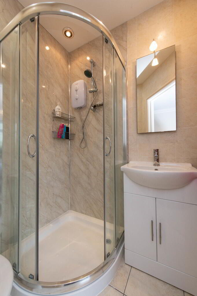 SHOWER ROOM Low flush W/C, vanity unit, shower unit with controlled shower, extractor fan, heated towel rail