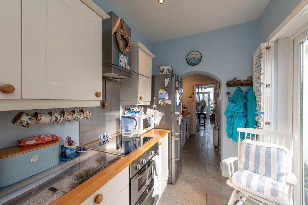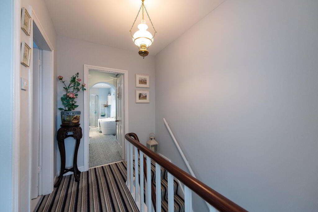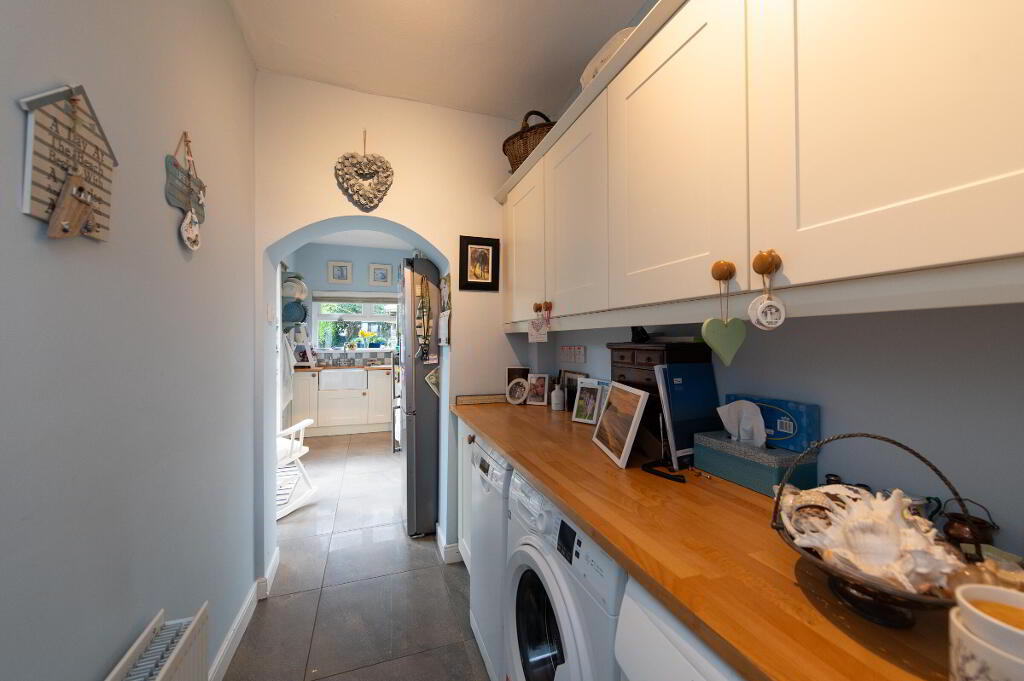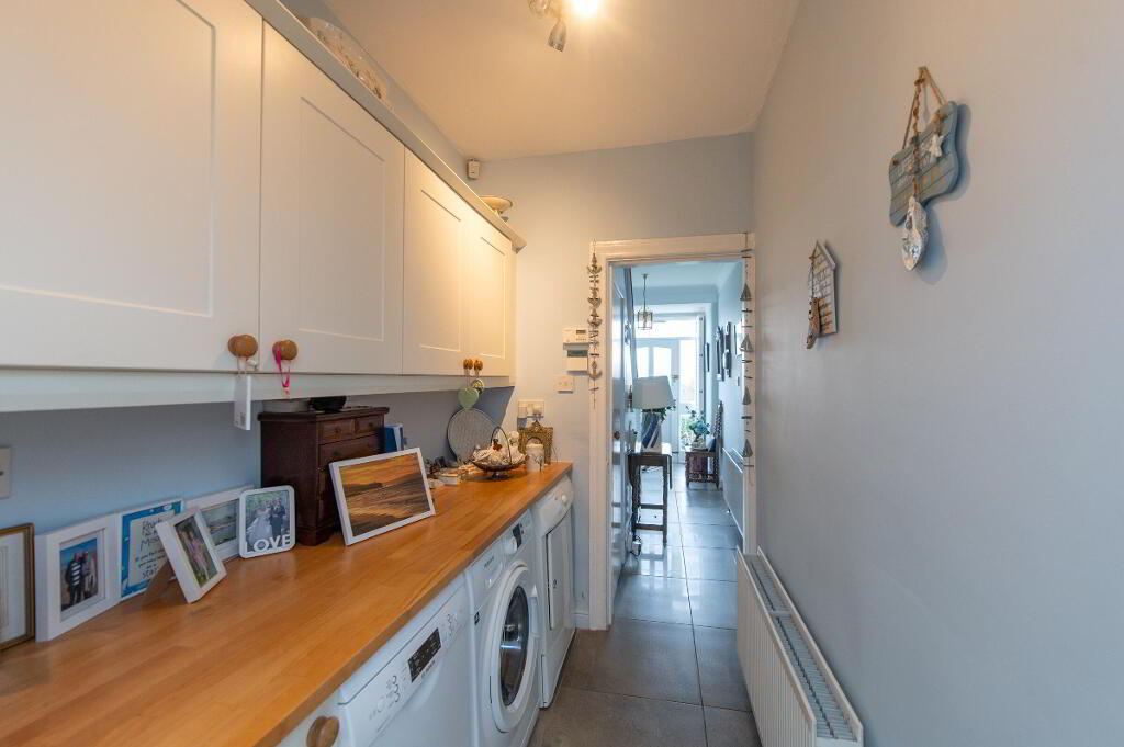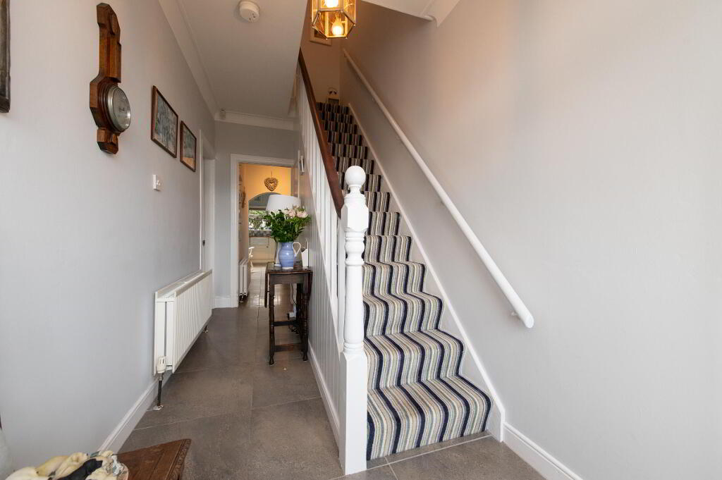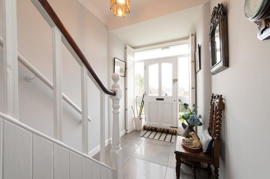 RECEPTION HALL Ceramic tiled flooring, views of Belfast Lough, understairs storage, shelving