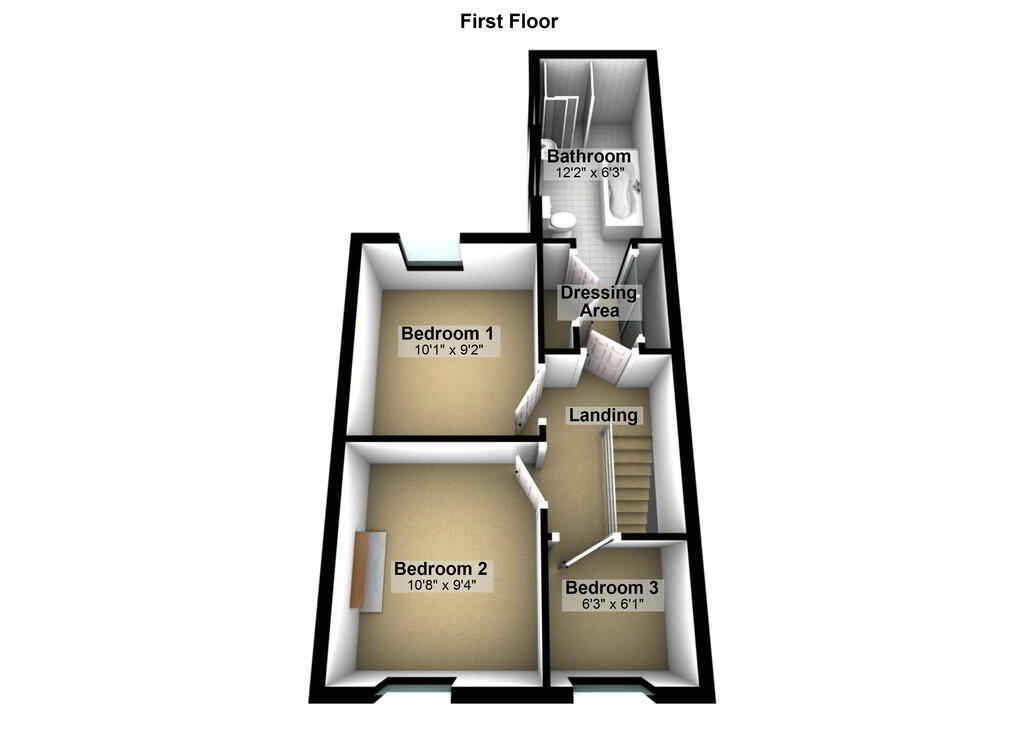 BEDROOM (3) 6' 3" x 6' 1" (1.91m x 1.85m) Laminate tiled flooring