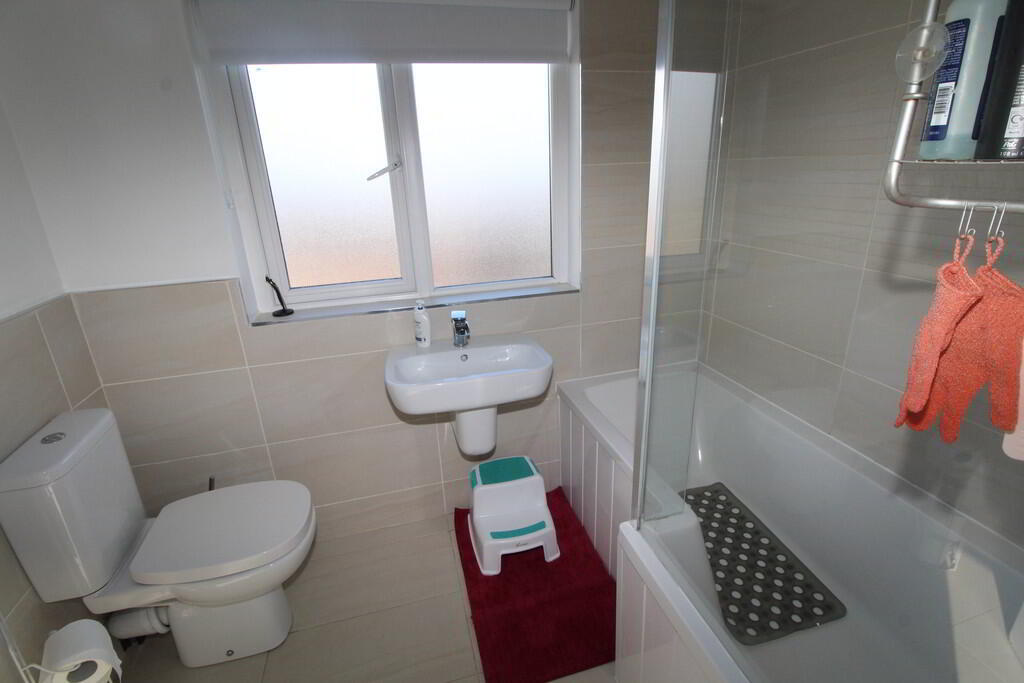 BATHROOM Panelled bath with mixer tap, shower unit with mixer tap, overhead rain shower, tiling, ceramic tiled flooring, wall hung wash hand basin, low flush W/C, heated towel rail