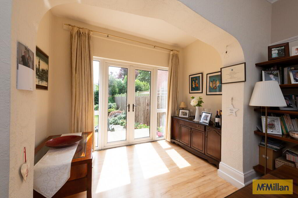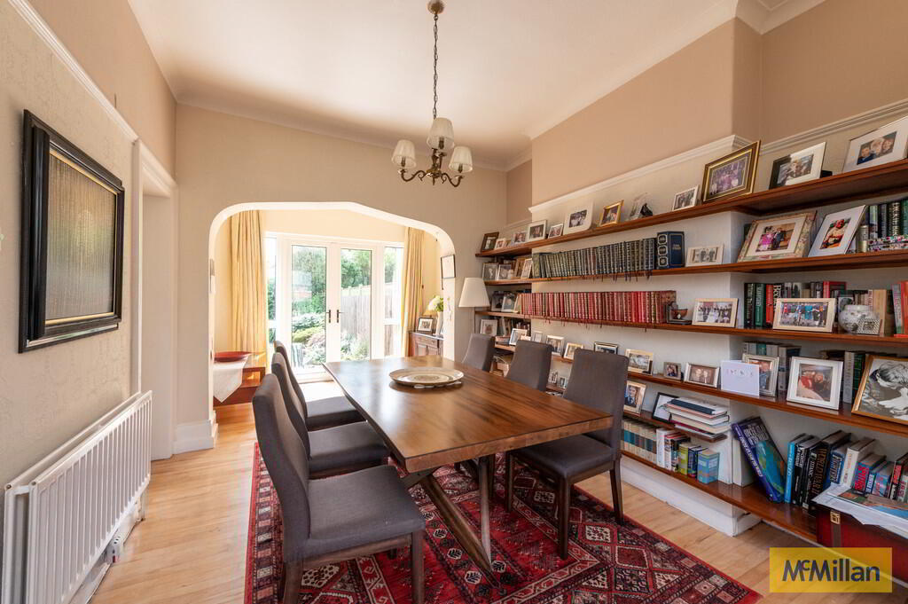 DINING ROOM 18' 2" x 11' 2" (5.54m x 3.4m) Solid wood flooring, French doors to garden