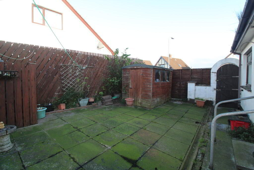 OUTSIDE Gardens to front and side laid in lawn, private paved driveway to side, fully enclosed flagged yard to rear.
