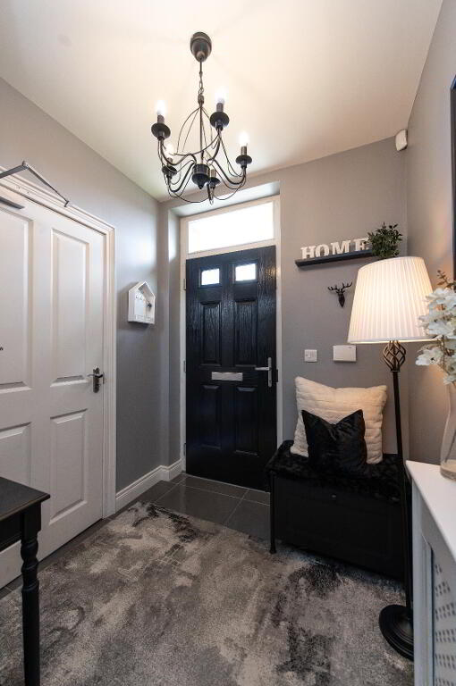 ENTRANCE HALL Polished porcelain tiled flooring, understairs storage