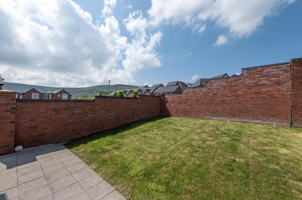 Rear: In lawn, garden, paved patio area, outside light and tap