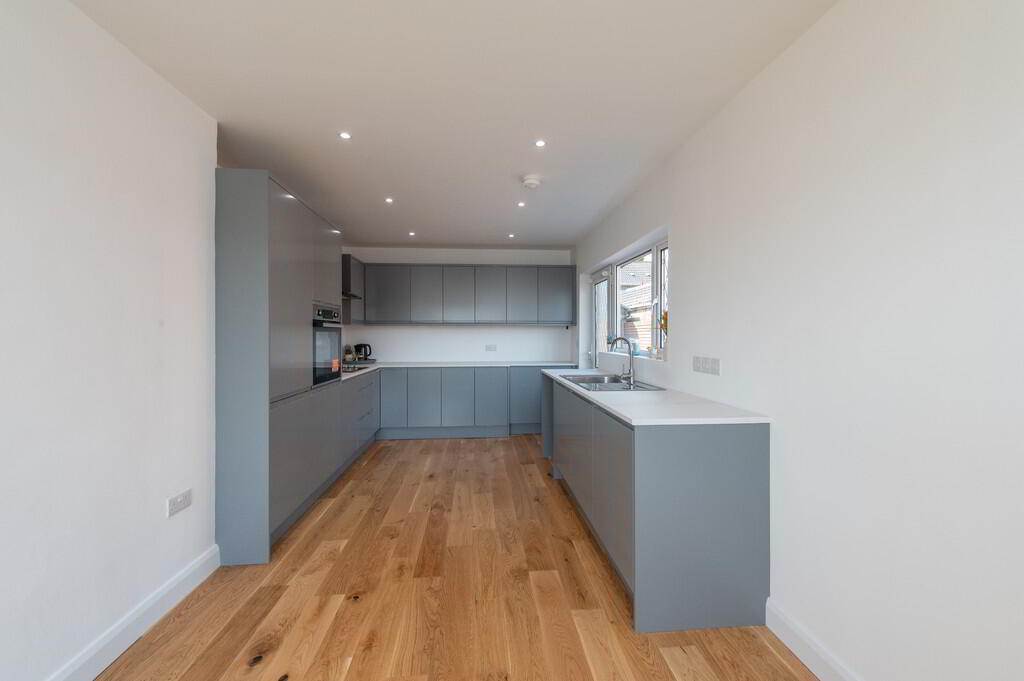 OUTSIDE Corner site. Garden to front, side (enclosed) and rear laid to lawn. Generous car parking space.