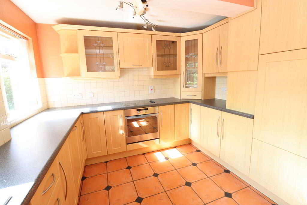KITCHEN 11' 8" x 10' 1" (3.56m x 3.07m) Range of high and low level shaker style units, round edge worksurfaces, single drainer stainless steel sink unit with mixer taps, built in stainless steel oven and hob unit, extractor fan and canopy, glazed display units, integrated fridge, integrated dishwasher, breakfast bar, wall tiling, ceramic tiled flooring