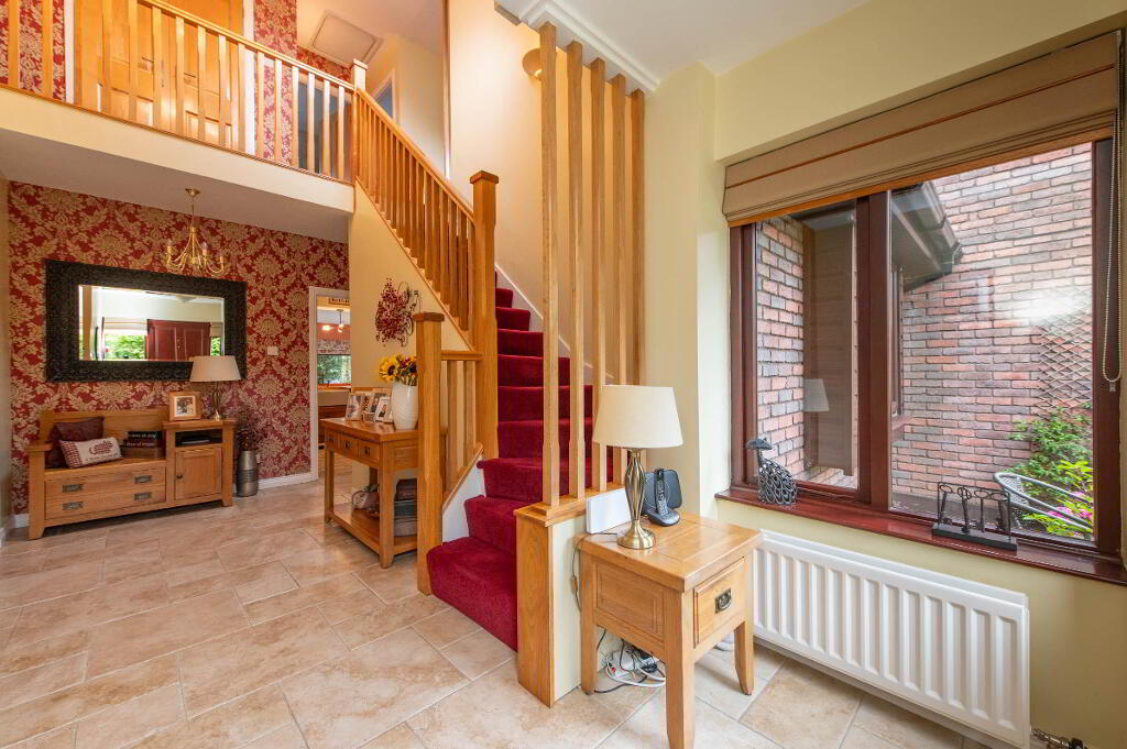 RECEPTION HALL Ceramic tiled flooring, oak staircase, understairs storage