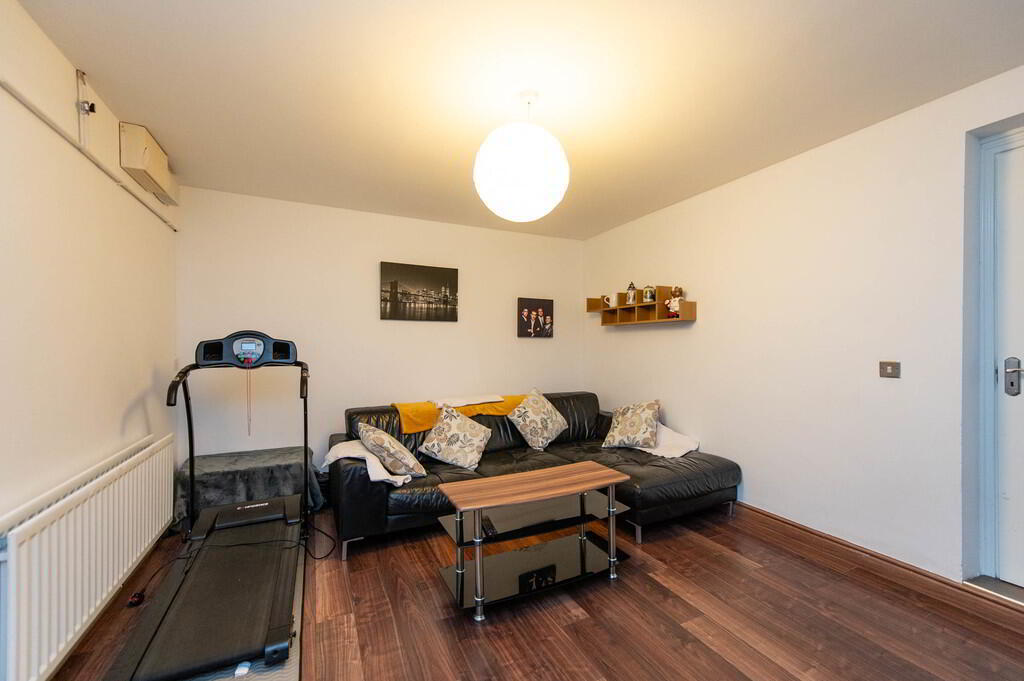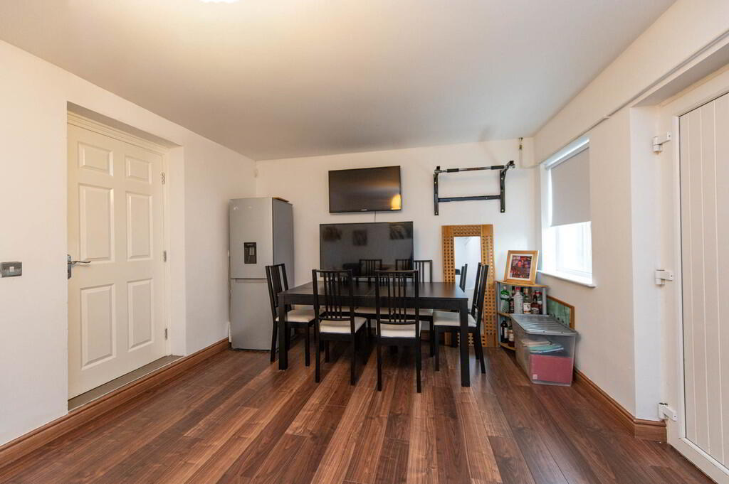 GARAGE 16' 8" x 11' 8" (5.08m x 3.56m) Currently subdivided and used as a playroom with separate storage area (no building control for change of use) laminate wooden flooring, radiator