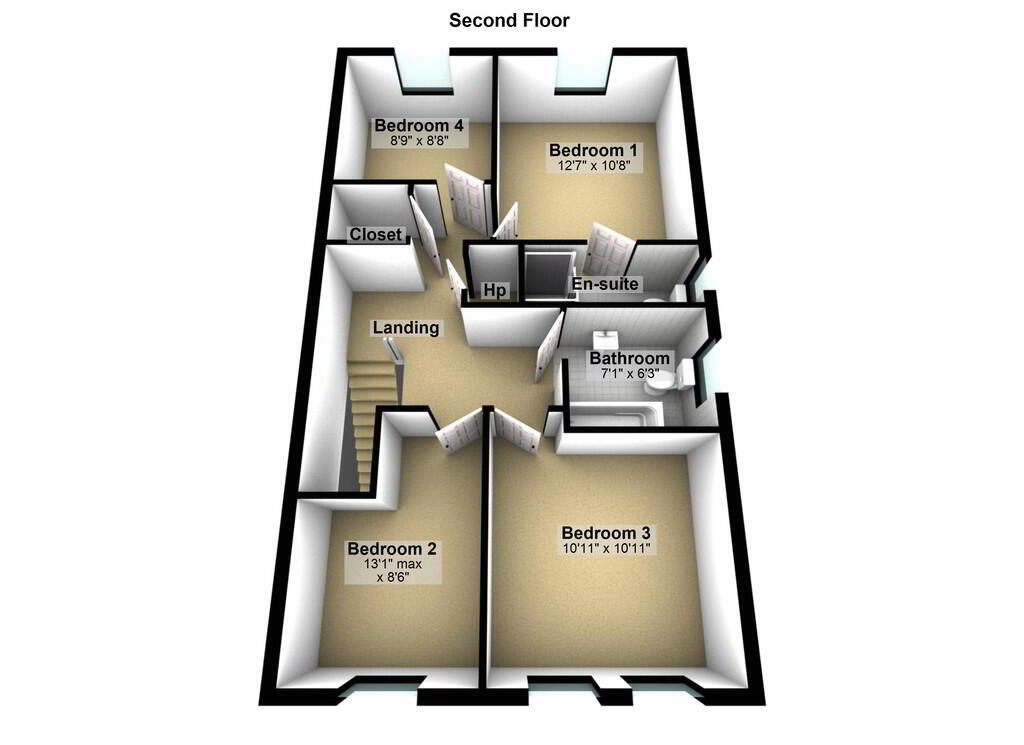 BEDROOM (2) 12' 0" x 8' 6" (at max)(3.66m x 2.59m) Laminate wood flooring, views over Belfast