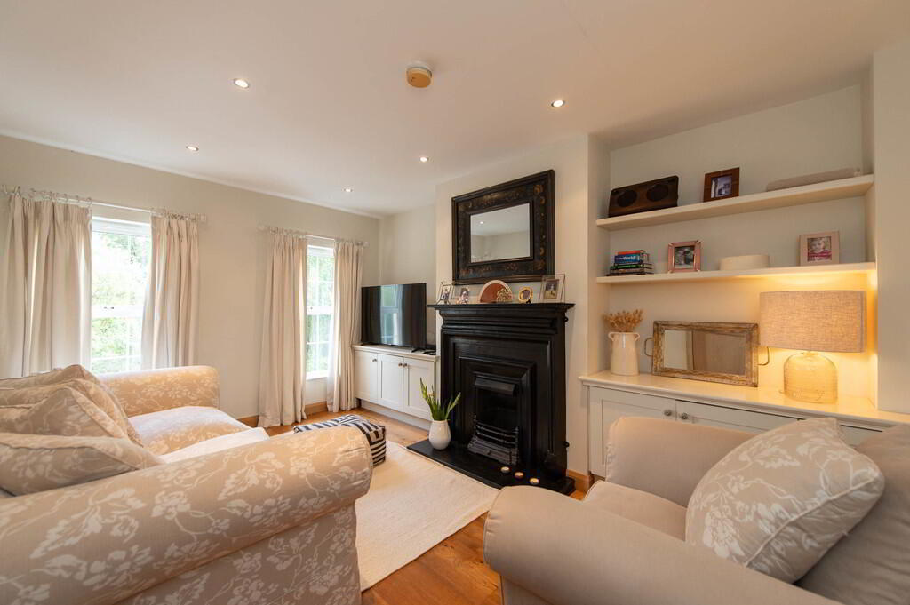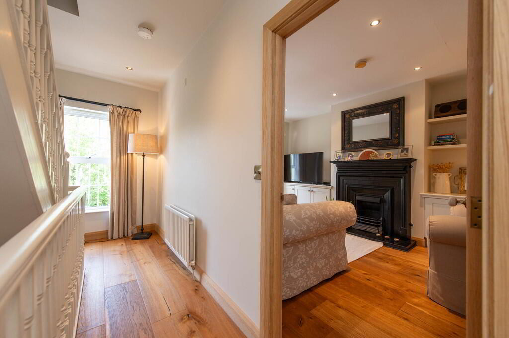 • Lounge with feature cast iron fireplace and engineered wood flooring