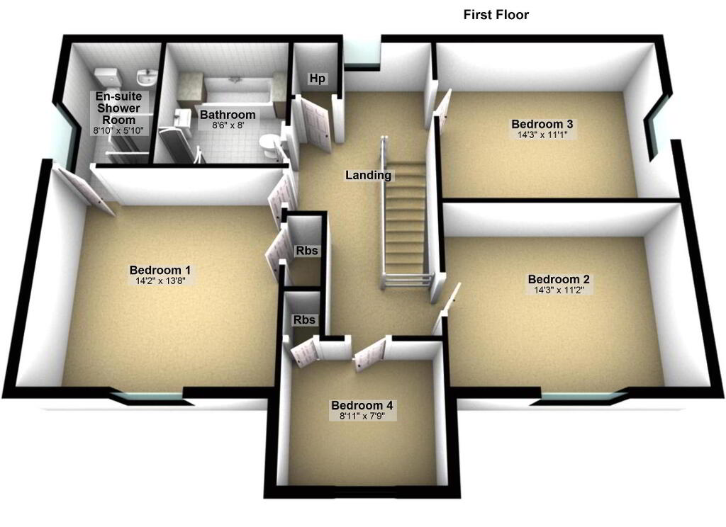 • 4 Bedrooms (master bedroom with ensuite shower room)