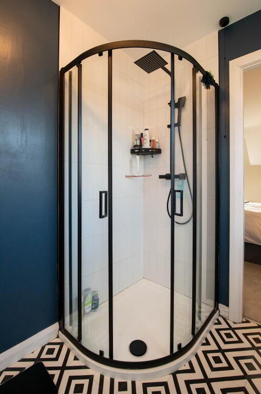 Ensuite Low flush w.c., wall hung wash hand basin, walk in shower unit with controlled shower