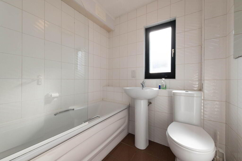 BATHROOM White suite, panelled bath with mixer tap, low flush W/C, pedestal wash hand basin, controlled shower, shower screen, luxury floor tiling, extractor fan, mirror