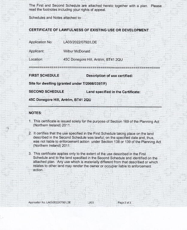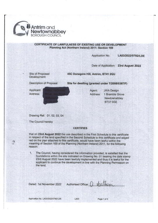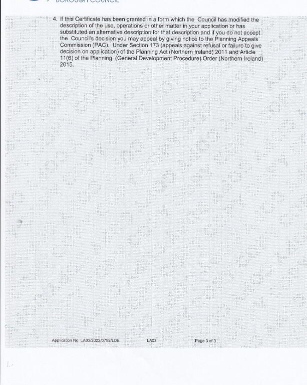 - Applicant number - LA03/2022/0792/LDE