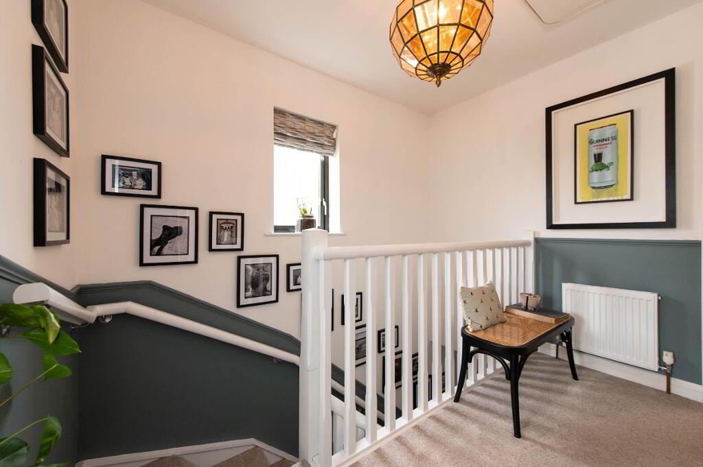 LANDING Wall panelling, shelved linen cupboard, access to roofspace
