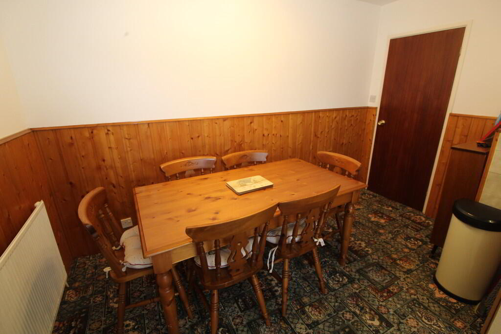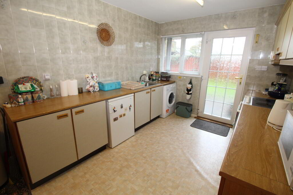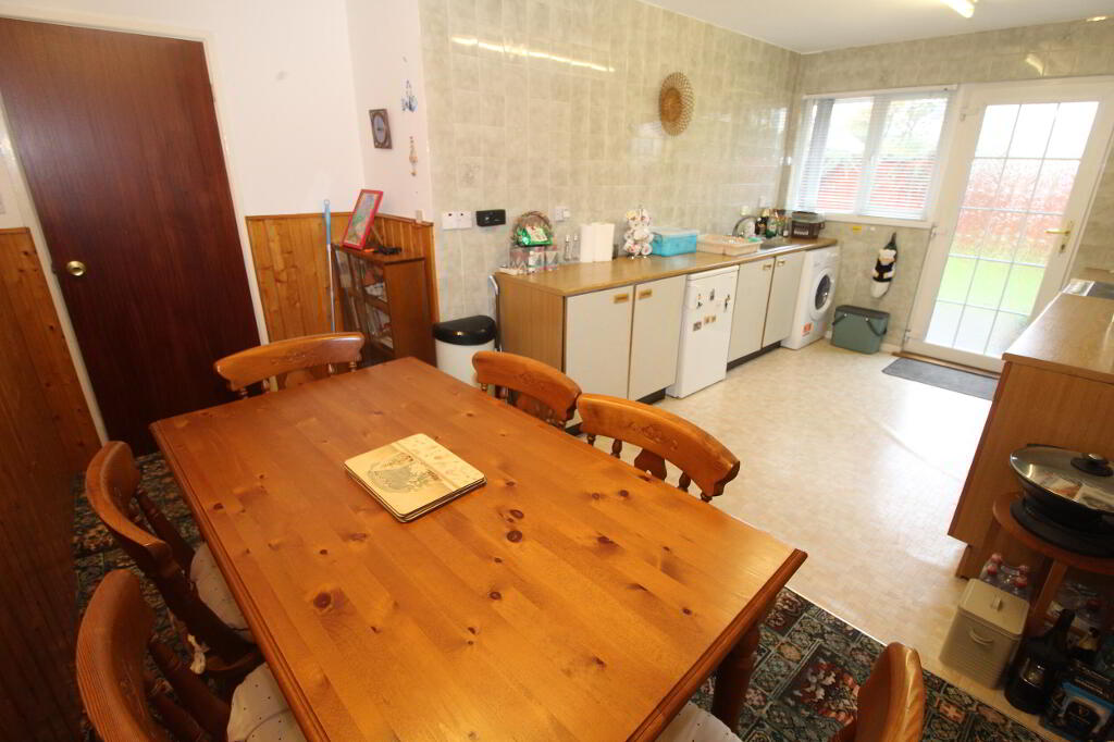 KITCHEN/ DINING ROOM 17' 3" x 11' 11" (5.26m x 3.63m) Panelling in dining area to dado rail height, rang of high and low level units with range of high and low level units, space for fridge, space for washing machine, space for oven/ hob, built in extractor fan, canopy, stainless steel sink unit with mixer tap and drainer, door to rear garden, wall tiling