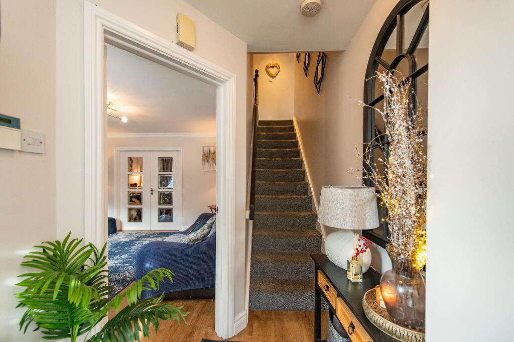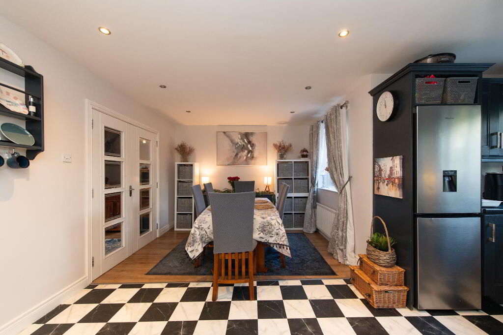 Located in a popular residential area, this deceptively spacious modern townhouse offers the perfect blend of style, comfort, and practicality. Step inside to discover a welcoming lounge featuring a cosy open fire, with double doors leading through to a large kitchen/dining area - a superb open-plan space ideal for everyday living and entertaining. Upstairs, you'll find four generous bedrooms, including a master bedroom with its own en-suite and four piece family bathroom suits. To the rear, the home enjoys an attractive, easy-to-maintain garden, perfect for summer evenings or weekend gatherings. With its well-planned layout and generous proportions throughout, this property truly needs to be seen to be appreciated.