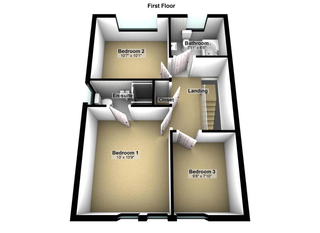 BEDROOM (1) 13' 0" x 10' 9" (3.96m x 3.28m)