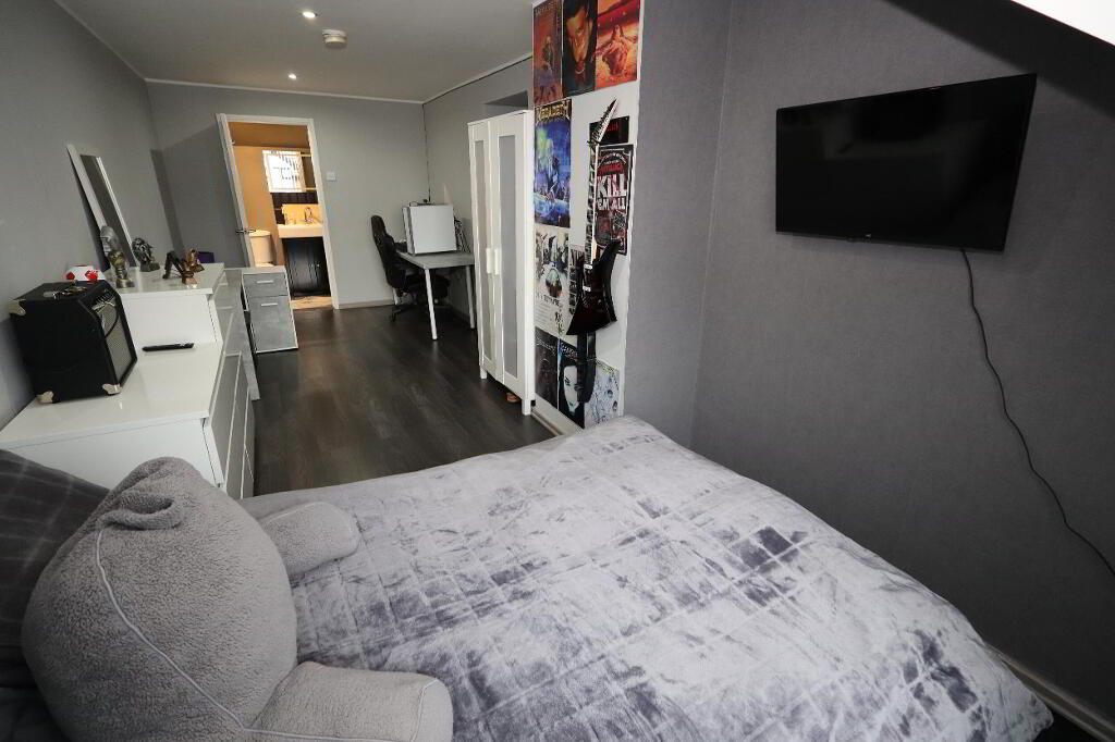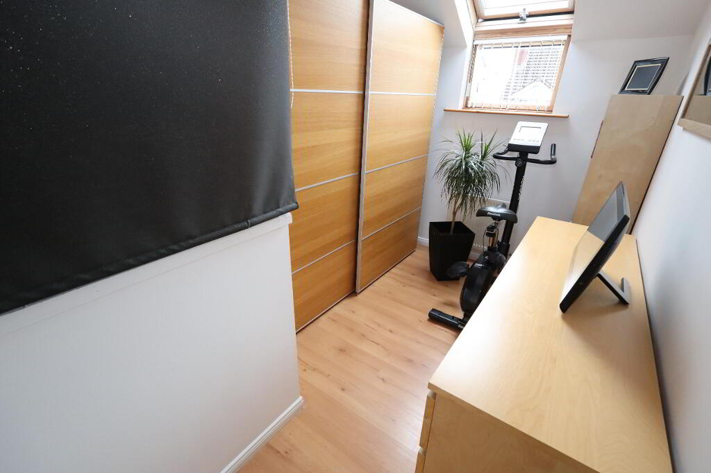 BEDROOM (1) 20' 5" x 8' 4" (6.22m x 2.54m) Downlighters, laminate wood flooring, views of Belfast Lough