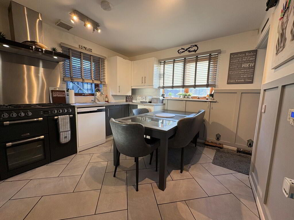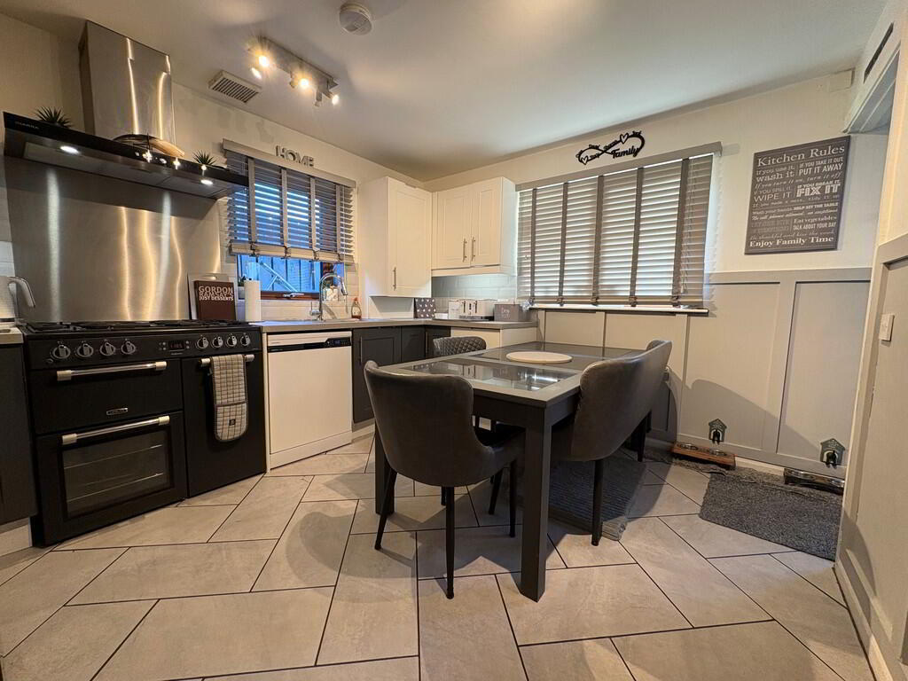 KITCHEN/DINING 12' 5" x 10' 6" (3.78m x 3.2m) Range of high and low level units, round edge worksurfaces, single drainer stainless steel sink unit with mixer taps, cooking point, stainless steel extractor hood, space for dishwasher, wall panelling, floor tiling, ceiling extractor vent