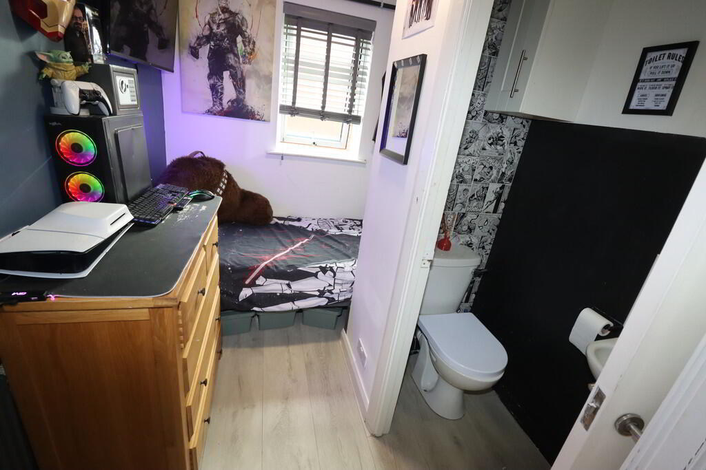 BEDROOM (3) 11' 11" x 6' 8" (3.63m x 2.03m) Laminate wood flooring, ceiling extractor vent, built in wardrobe