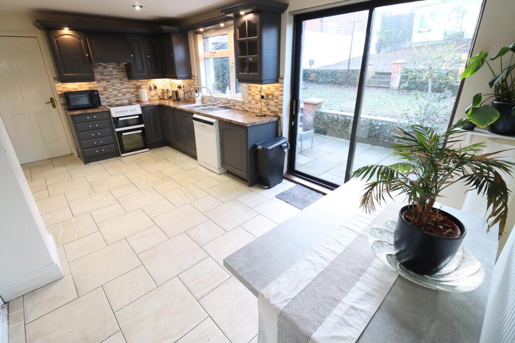 13 Glenard Brook is a double extended semi-detached villa, set within a highly popular and convenient cul-de-sac. The property offers four well-proportioned bedrooms and a generous open-plan lounge, ideal for modern family living. A deceptively spacious kitchen and dining area provides excellent everyday space, complemented by a utility room and convenient downstairs W/C. The home benefits from uPVC double glazing and recently fitted gas boiler and radiators throughout, ensuring comfort and efficiency. A family bathroom completes the internal accommodation. Externally, there is a generous, enclosed rear garden, ideal for outdoor entertaining, along with car parking to the front and an integral garage. The property is ideally located close to excellent schools, local shops and frequent public transport links, making it an ideal family home in a sought-after setting.