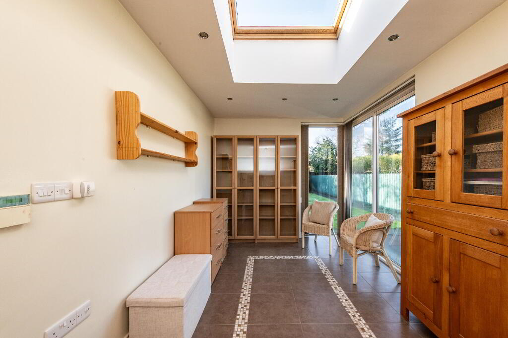 SUNROOM/ LIBRARY/STUDY 15' 9" x 8' 6" (4.8m x 2.59m) Velux window, patio doors, ceramic tiled flooring, downlighters