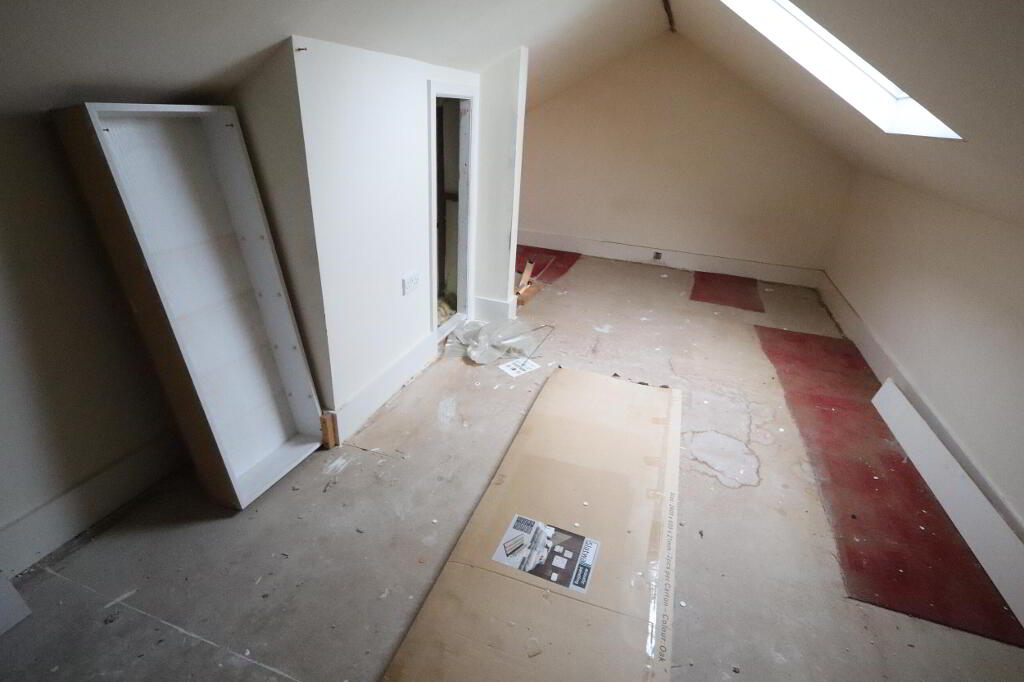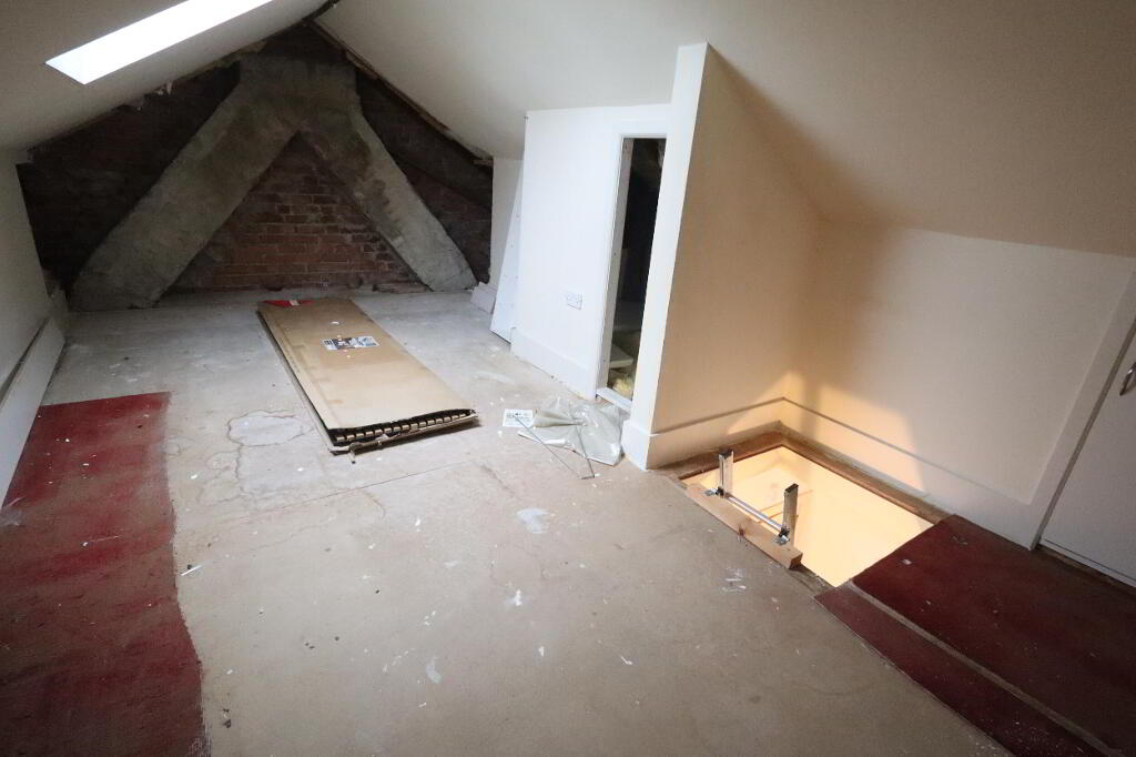 LANDING Storage cupboard with Worcester gas boiler, access to fully floored roofspace with eave storage, Velux window, eave storage