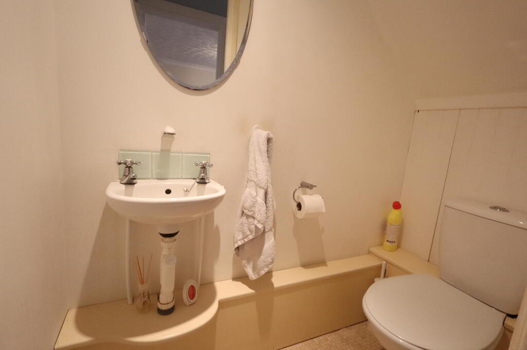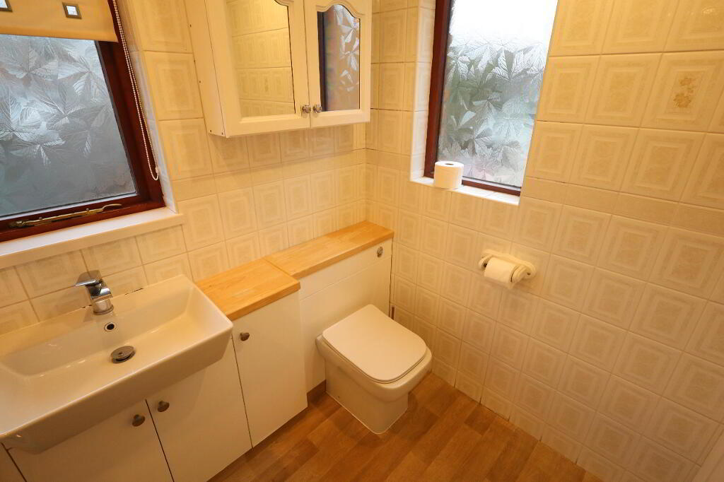 DOWNSTAIRS W/C Low flush W/C, hanging wash hand basin, extractor fan