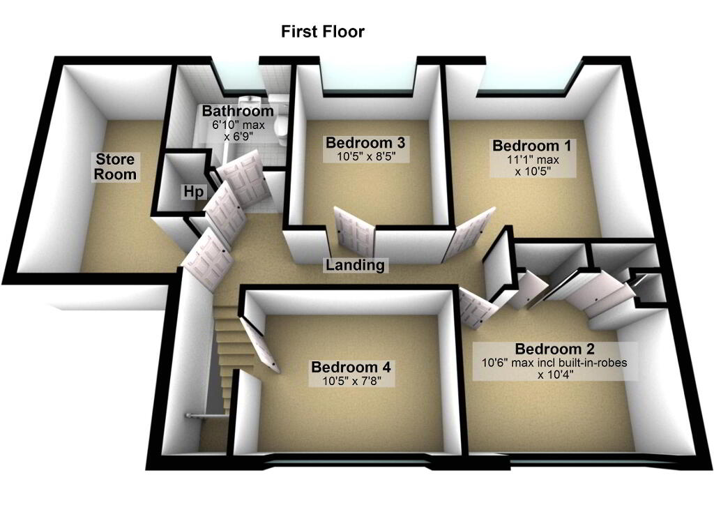 BEDROOM (4) 10' 5" x 7' 8" (3.18m x 2.34m)