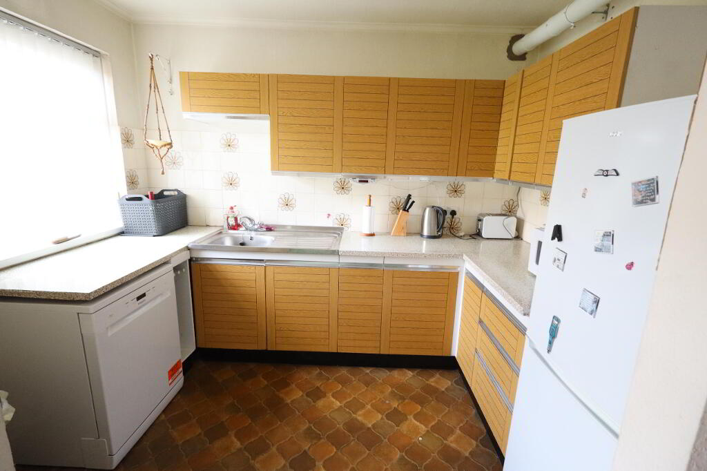 KITCHEN 9' 10" x 6' 8" (3m x 2.03m) Range of high and low level units, round edge worksurfaces, single drainer stainless steel sink unit with mixer taps, fluorescent light, wall tiling